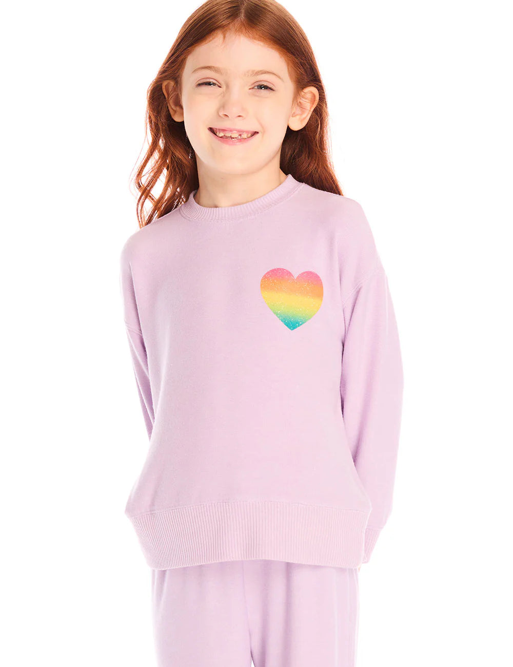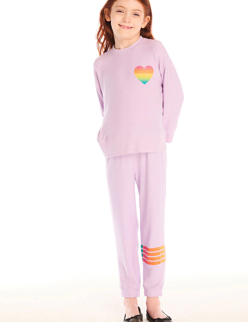 CHASER KIDS RAINBOW GLITTER CREW AND SWEATS SET