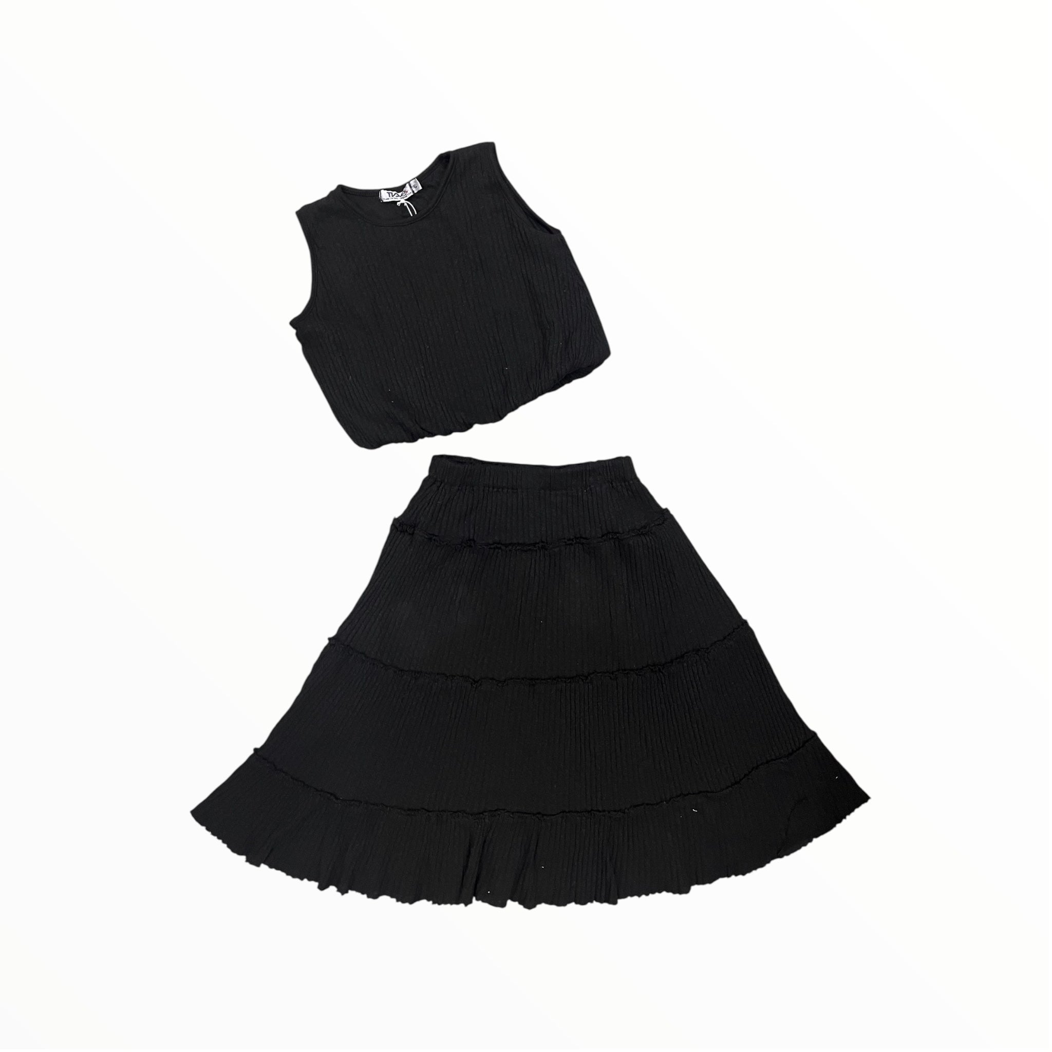 T2LOVE BUBBLE TOP AND MAXI SKIRT SET - BLACK