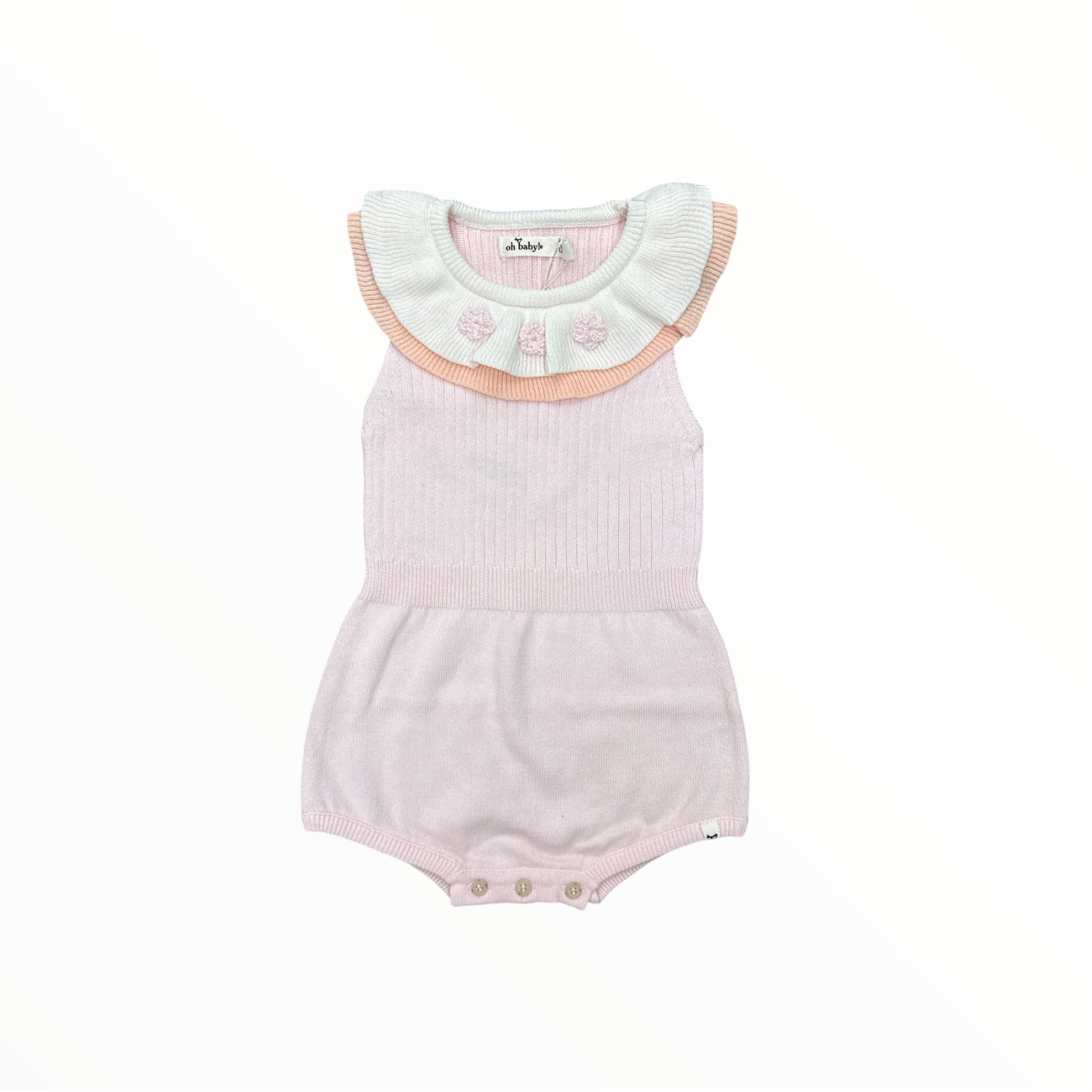 OH BABY! FLOWER CROCHET VICTORIA ROMPER - PINK