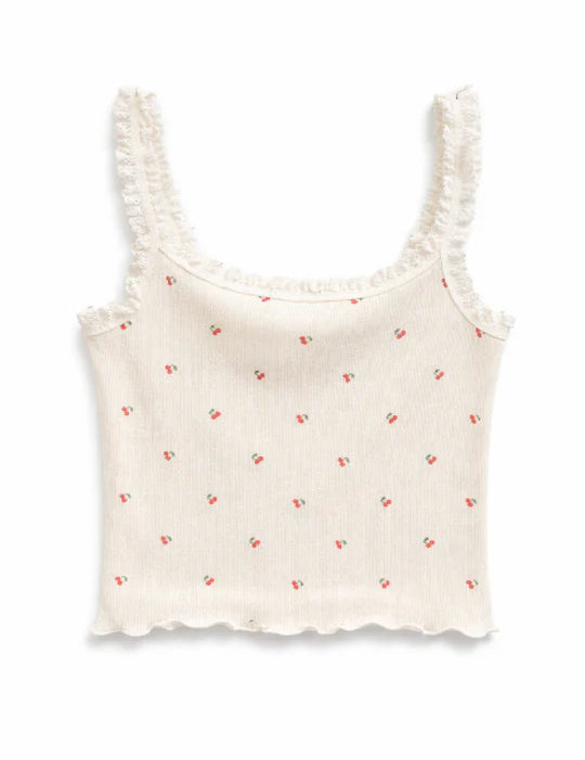 KATIE J TWEEN SUSAN TANK - WHITE/CHERRY PRINT