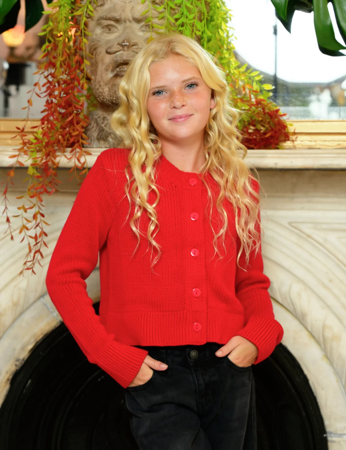 KATIE J TWEEN PIPER CARDIGAN -RED