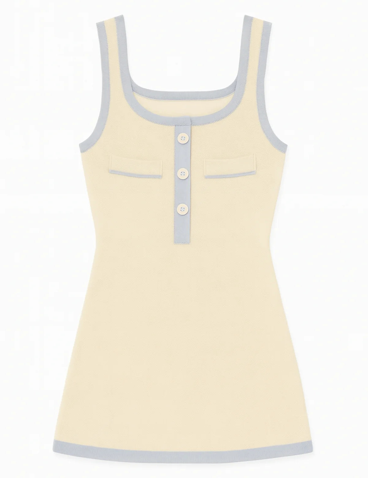 KATIE J. TWEEN WHITNEY COLORBLOCK SLEEVELESS DRESS - CREAM/BLUE