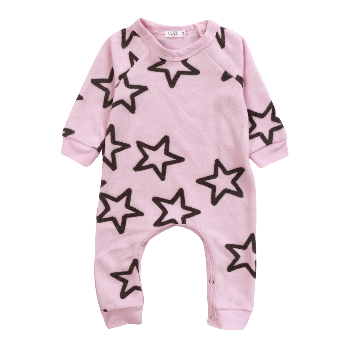 COZII LONG SLEEVE ROMPER - BABY PINK/STARS