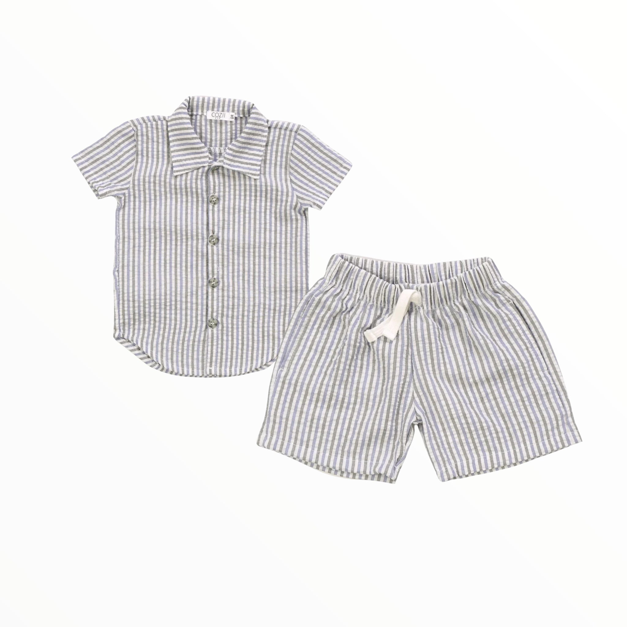 COZII S/S BUTTON DOWN AND SHORT SET - CRINKLE TRIPE