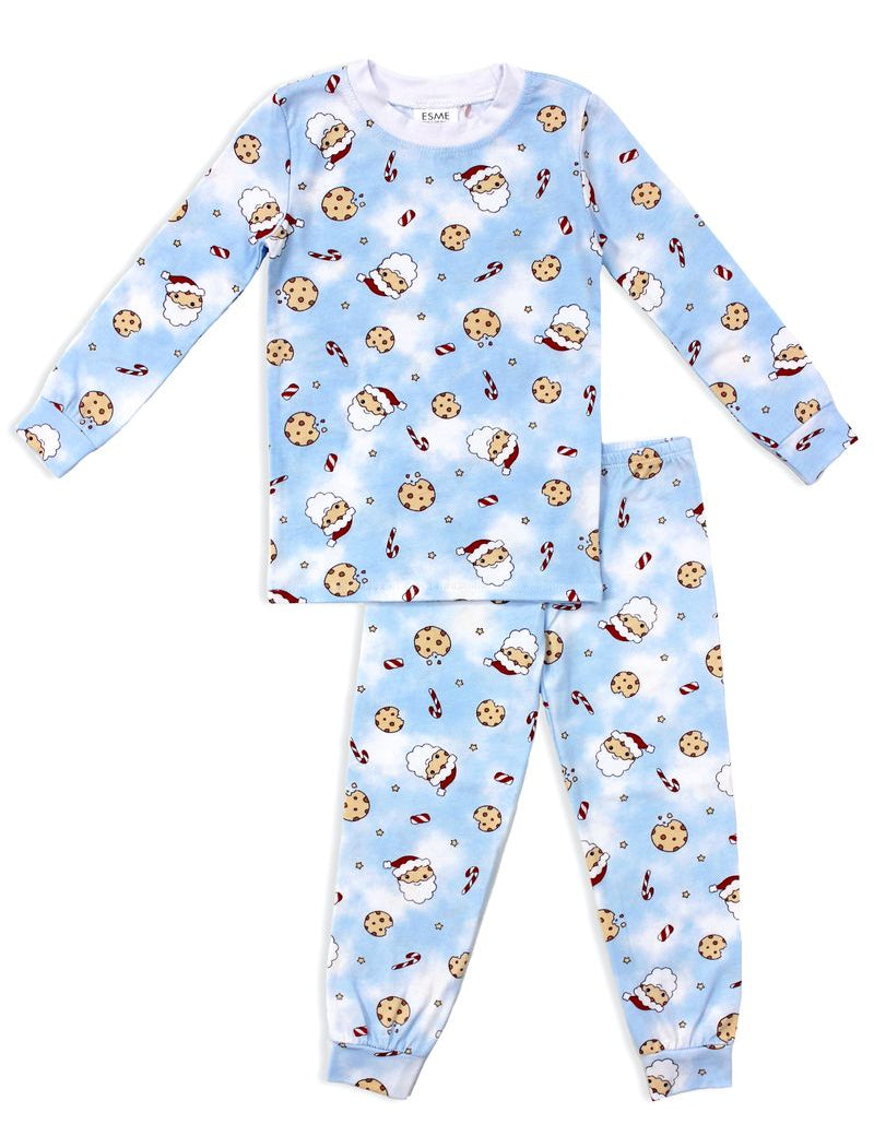 ESME BOYS LONG SLEEVE CREW PAJAMA - SANTA COOKIES BLUE