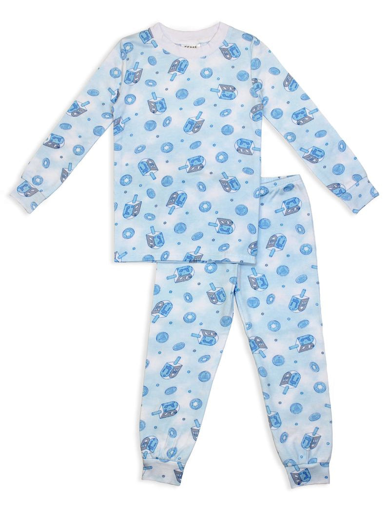 ESME BOYS LONG SLEEVE CREW PAJAMA - BLUE HANNUKAH