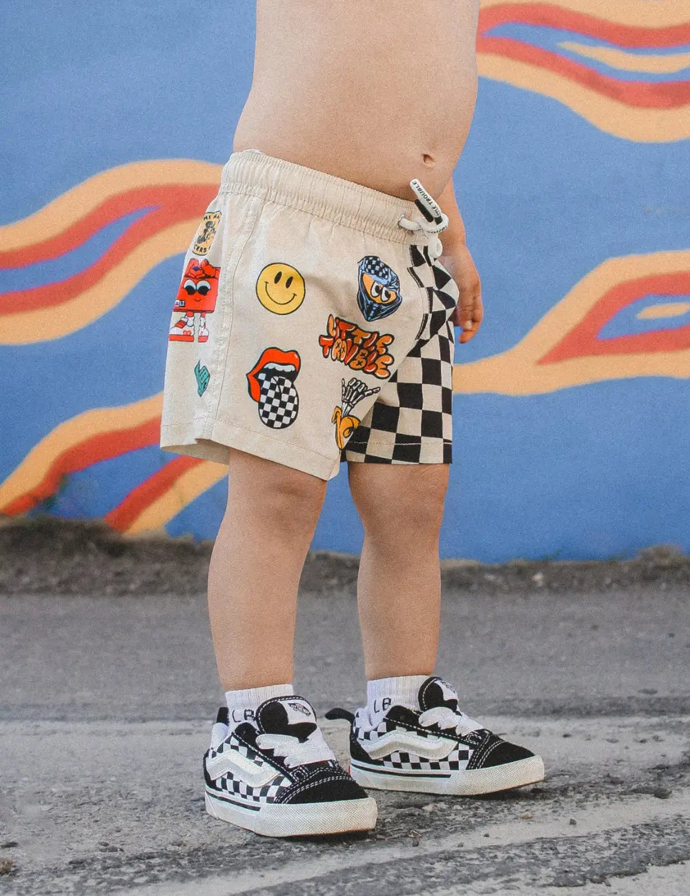 MINI DREAMERS CHASE WAVEY LINEN BUTTON DOWN AND SHORTS SET