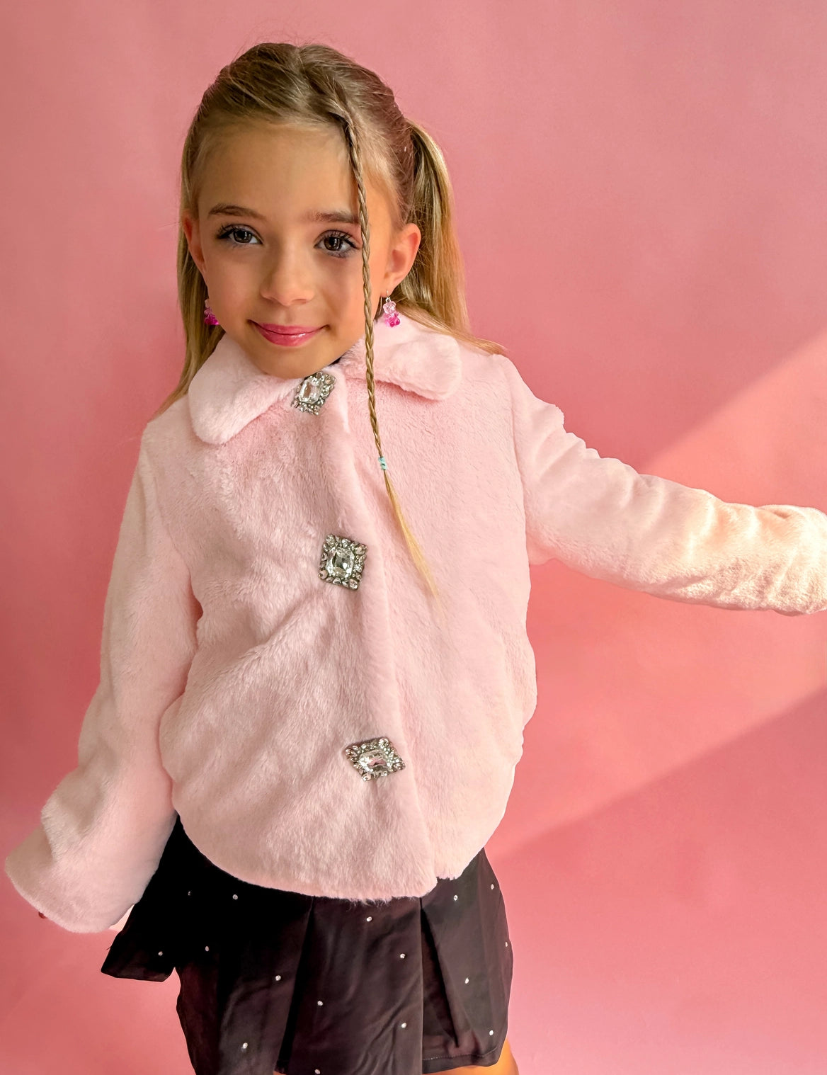 ELLLIE AND MILA FAUX FUR GEM JACKET - PINK
