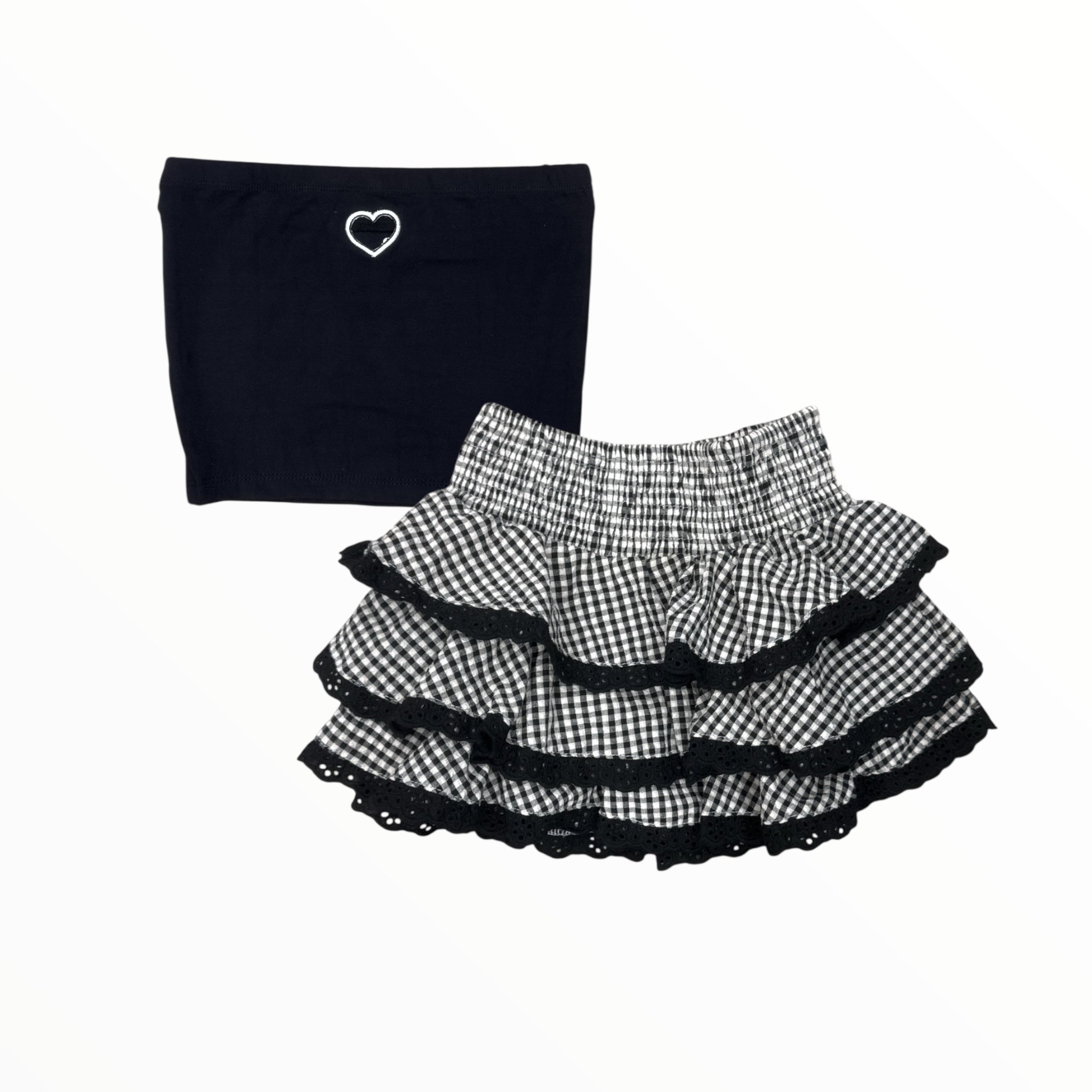 FLOWERS BY ZOE GAUZE SKIRT - BLACK/WHITE GINGHAM