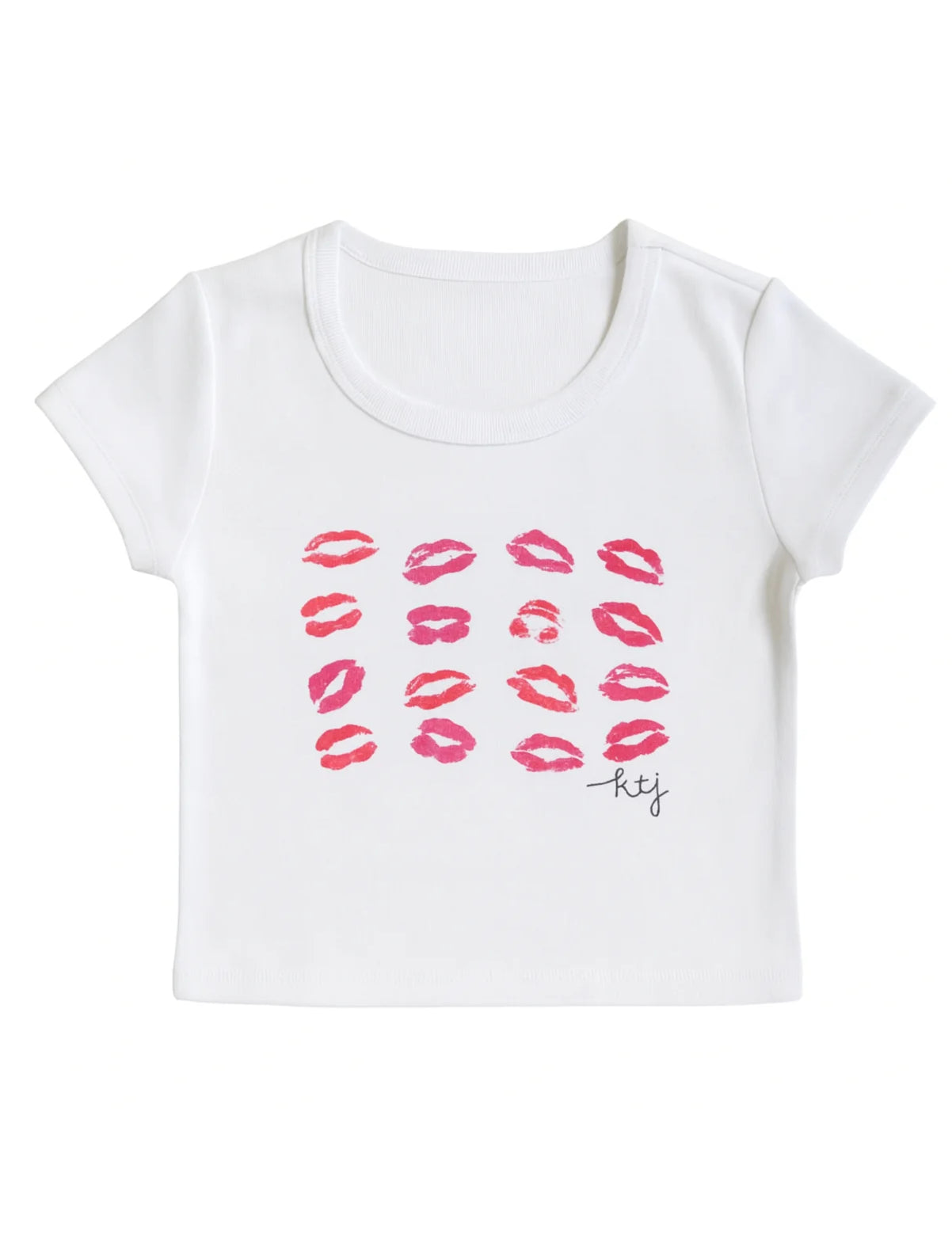 KATIE J TWEEN KISSES PRINT GRAPHIC TEE - WHITE