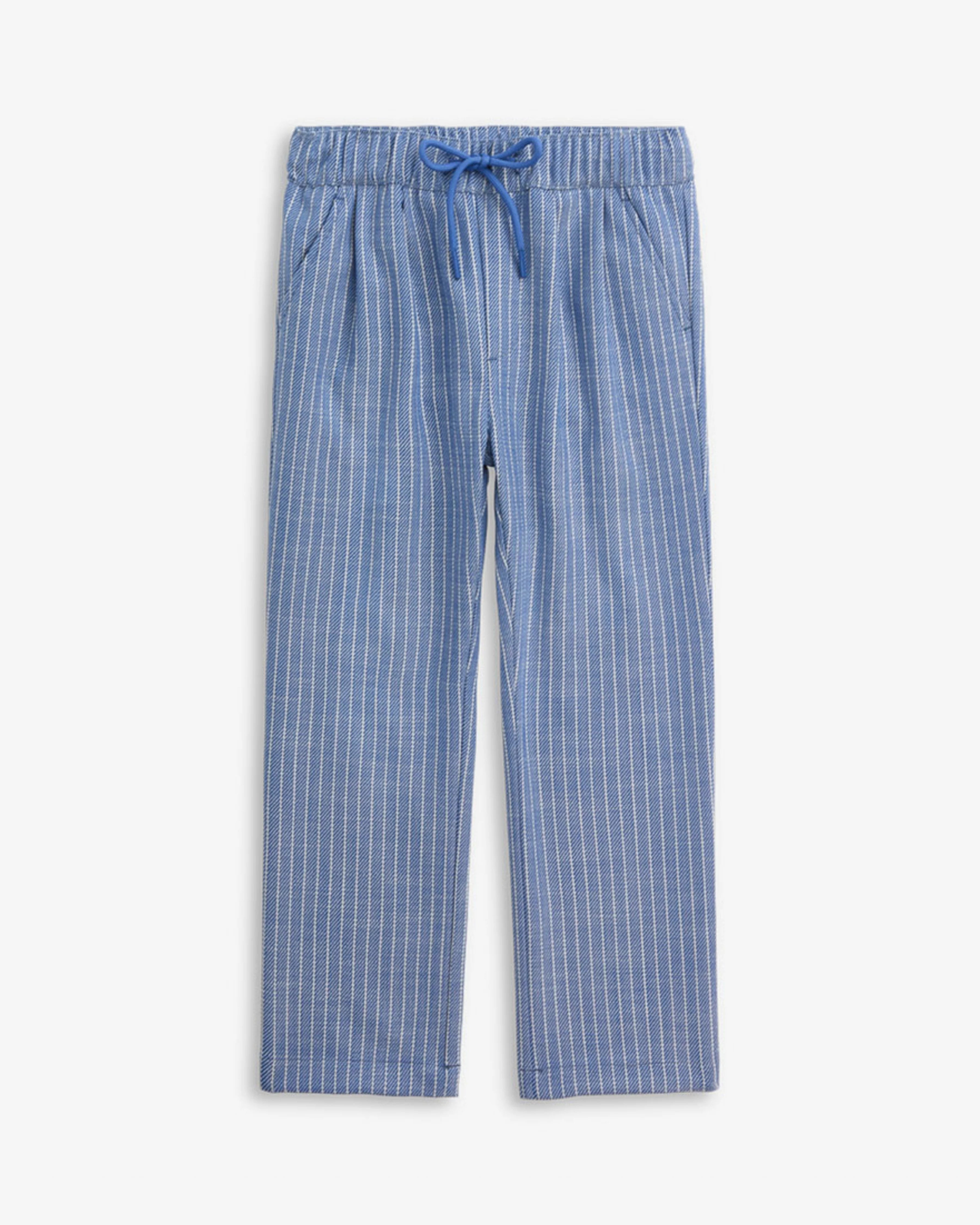 The Nautical Stripe Resort Pant is made for effortless spring and summer dressing. Featuring a comfortable pull-on style with an adjustable drawstring waist, plus front and back pockets, these easy pants are finished with a classic blue and white stripe parents love. Perfect for vacations, playdates, and everyday wear.