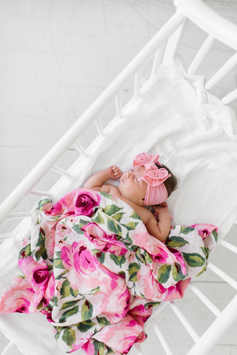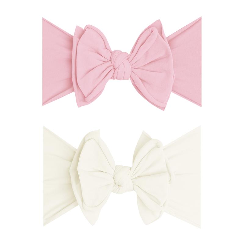 These headbands are one size fits most and the size cannot be adjusted. The headband is sewn at a 6.5" diameter (13" circumference), keep in mind that measurement is before it stretches. We feel this is the perfect size for our soft material to fit a newborn and stretch comfortably as she grows into childhood. The bow measures approximately 4.5" across. The FAB headband is wider that our Classic styles, unrolled the width measures approximately 5". All edges of this style are raw and are intended to roll. This style is secured with adhesive once tied and is not meant to be untied. The FAB material is a soft nylon/spandex blend, produced to our specifications, in the USA . Each headband is hand sewn and tied by women in our local community. Due to the nature of small-batch production color and sizing can vary slightly.