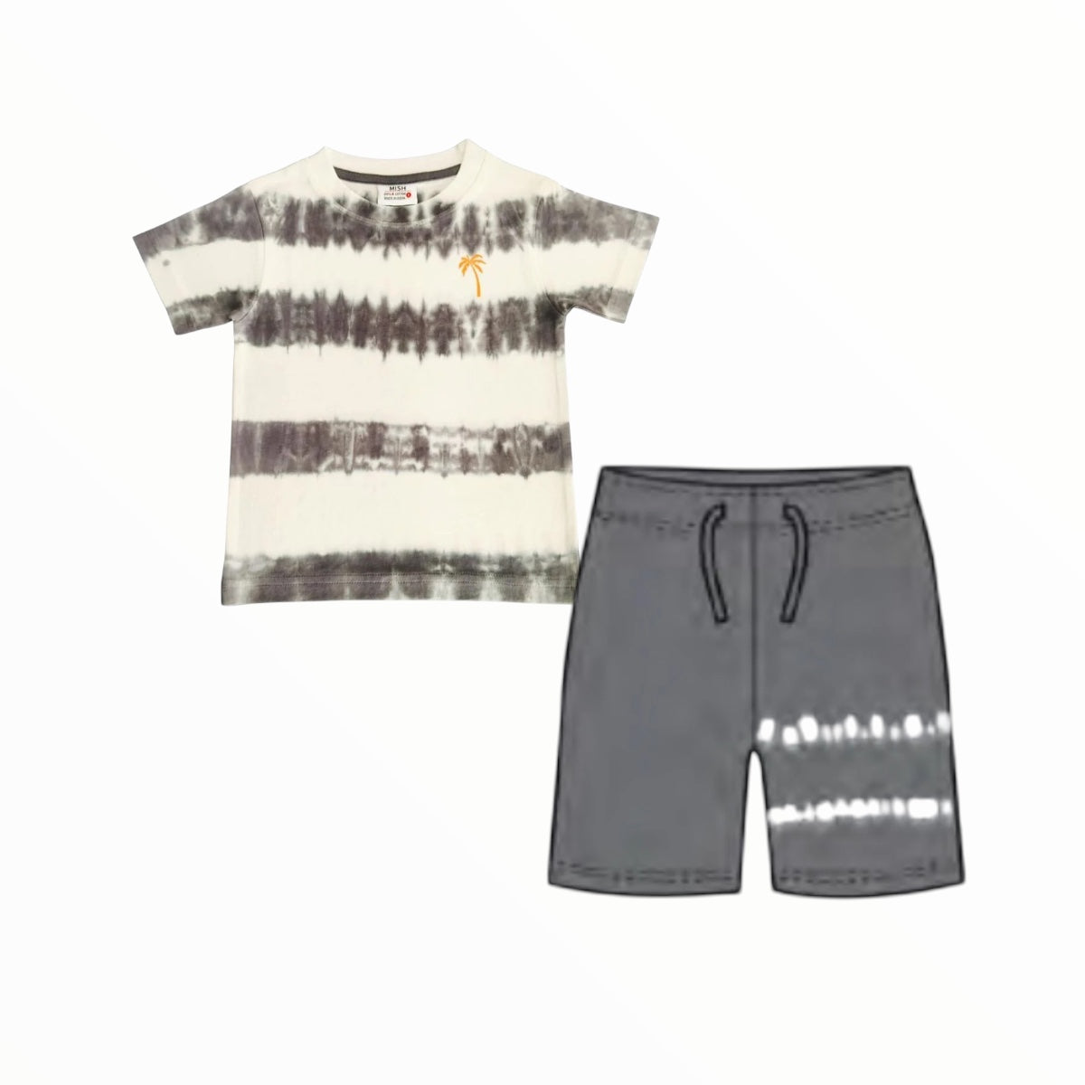 BABY STEPS T-SHIRT AND SHORT SET - COAL TIE DYE STRIPE