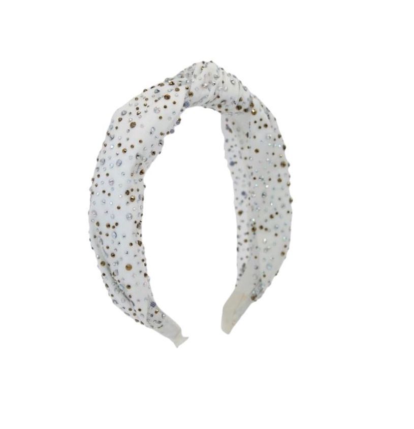 BARI LYNN JEWELED KNOT HEADBAND - WHITE METALLIC