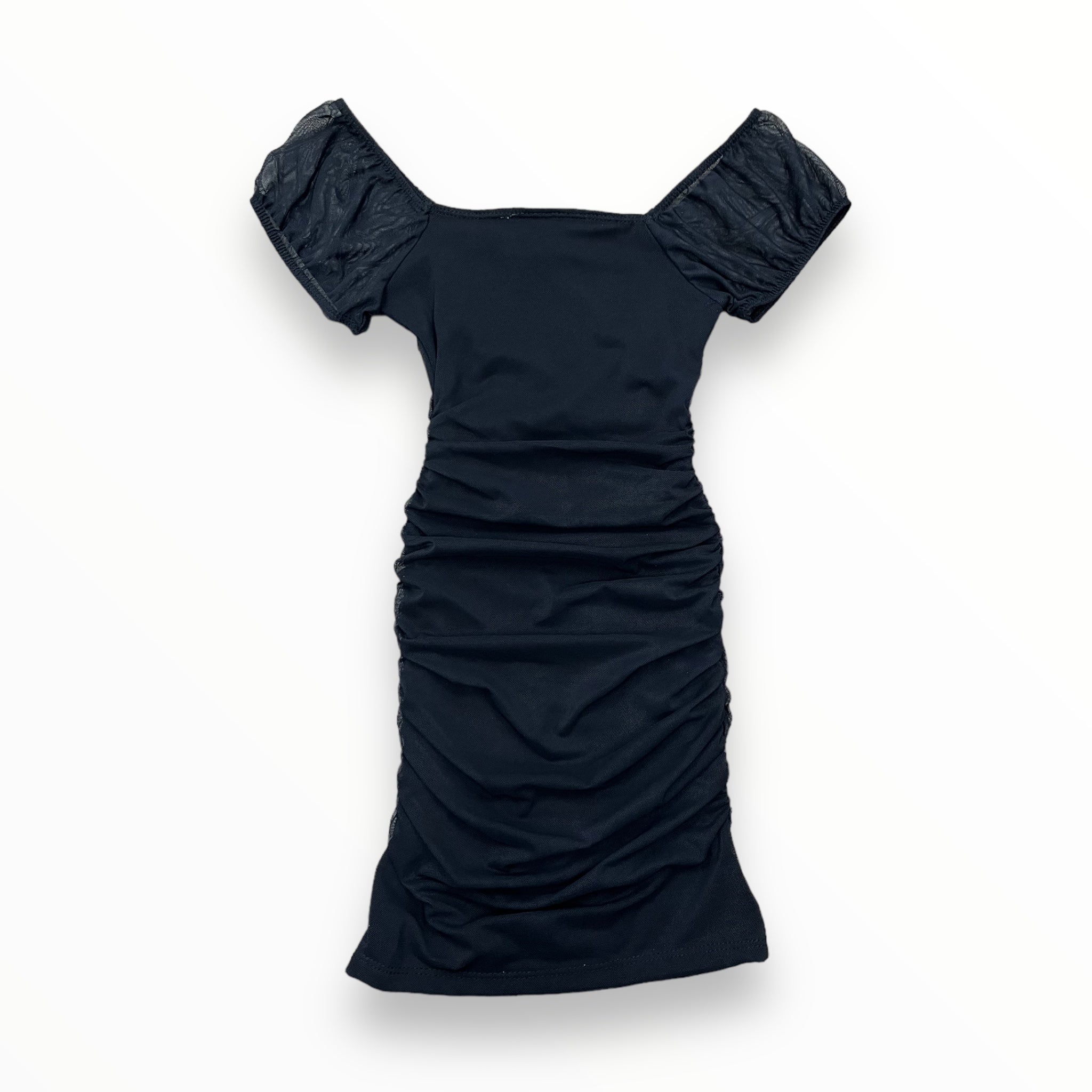 CHERYL KIDS CAP SLEEVE MESH DRESS - BLACK