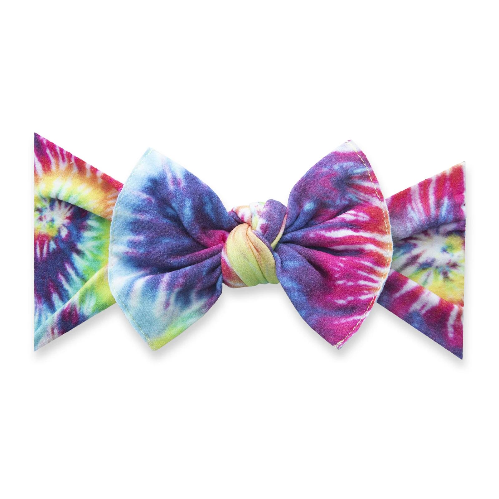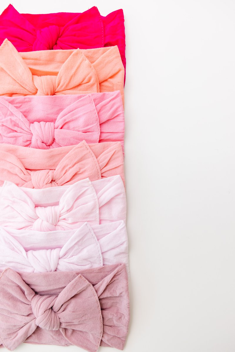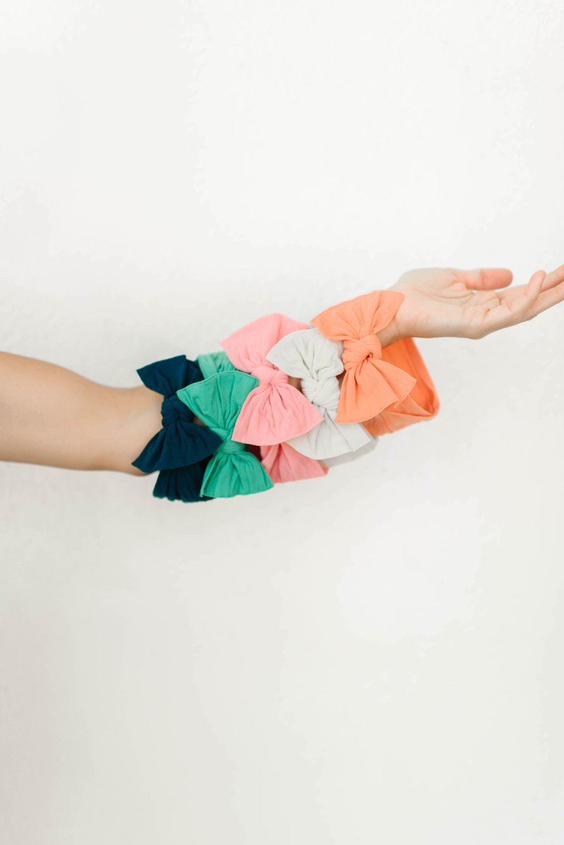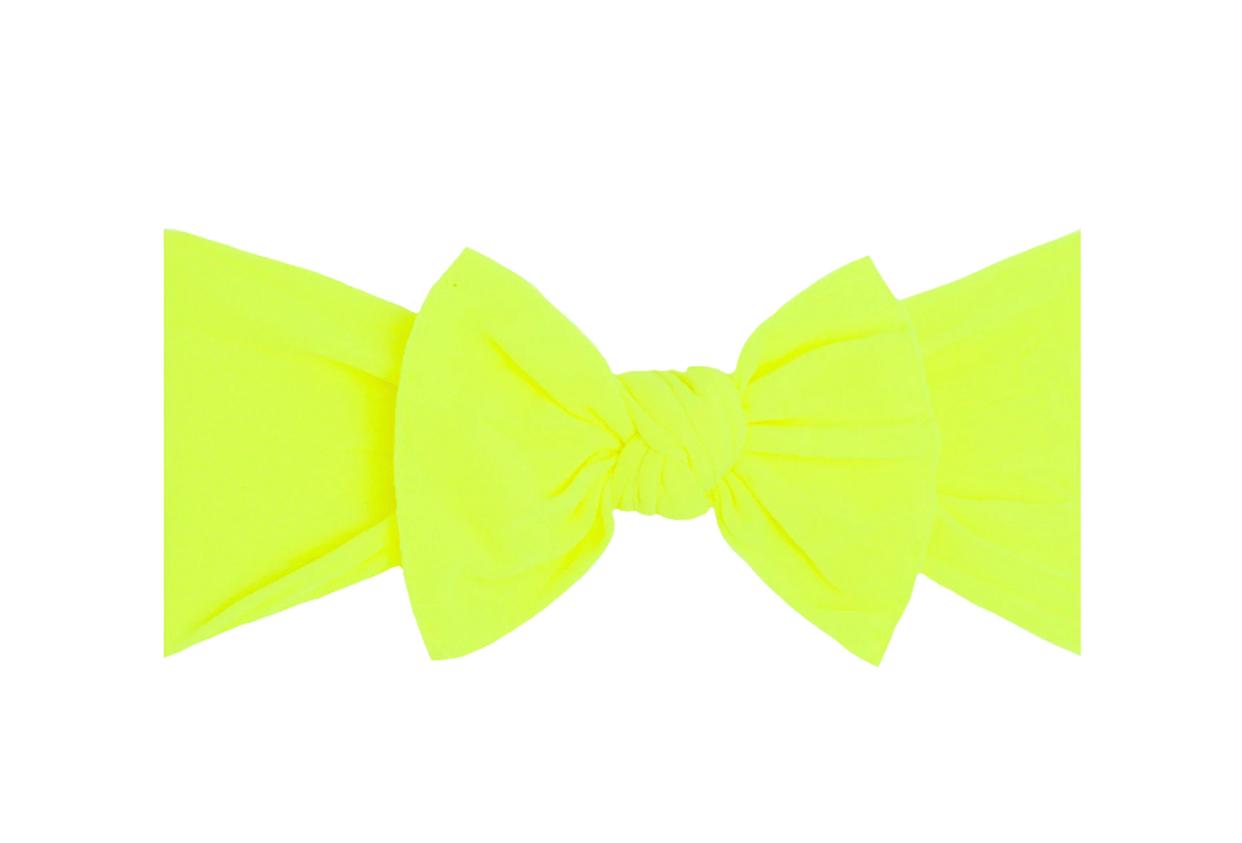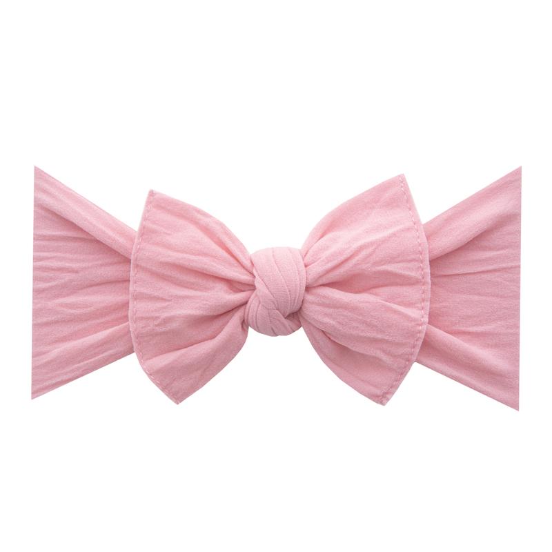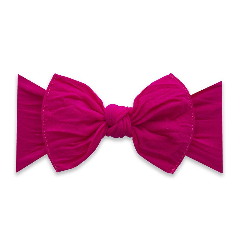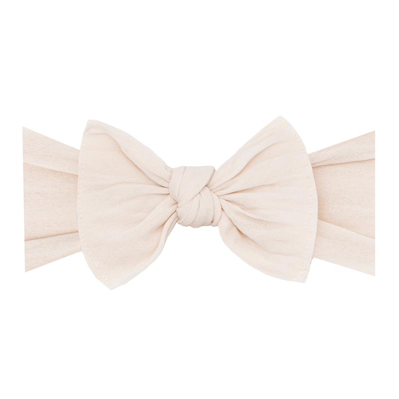 THE BOW MEASURES APPROXIMATELY 4" ACROSS. THE EXPOSED STITCHING DETAIL AND A RAW EDGE IS SIGNATURE BABY BLING! THIS STYLE IS SEWN IN TWO PIECES AND CAN BE TAKEN APART FOR HAND WASHING OR TO MIX-AND-MATCH. THE CLASSIC KNOT MATERIAL IS A SOFT NYLON, PRODUCED TO OUR SPECIFICATIONS, IN THE USA. EACH HEADBAND IS HAND SEWN AND TIED BY WOMEN IN OUR LOCAL COMMUNITY. DUE TO THE NATURE OF SMALL-BATCH PRODUCTION COLOR AND SIZING CAN VARY SLIGHTLY.