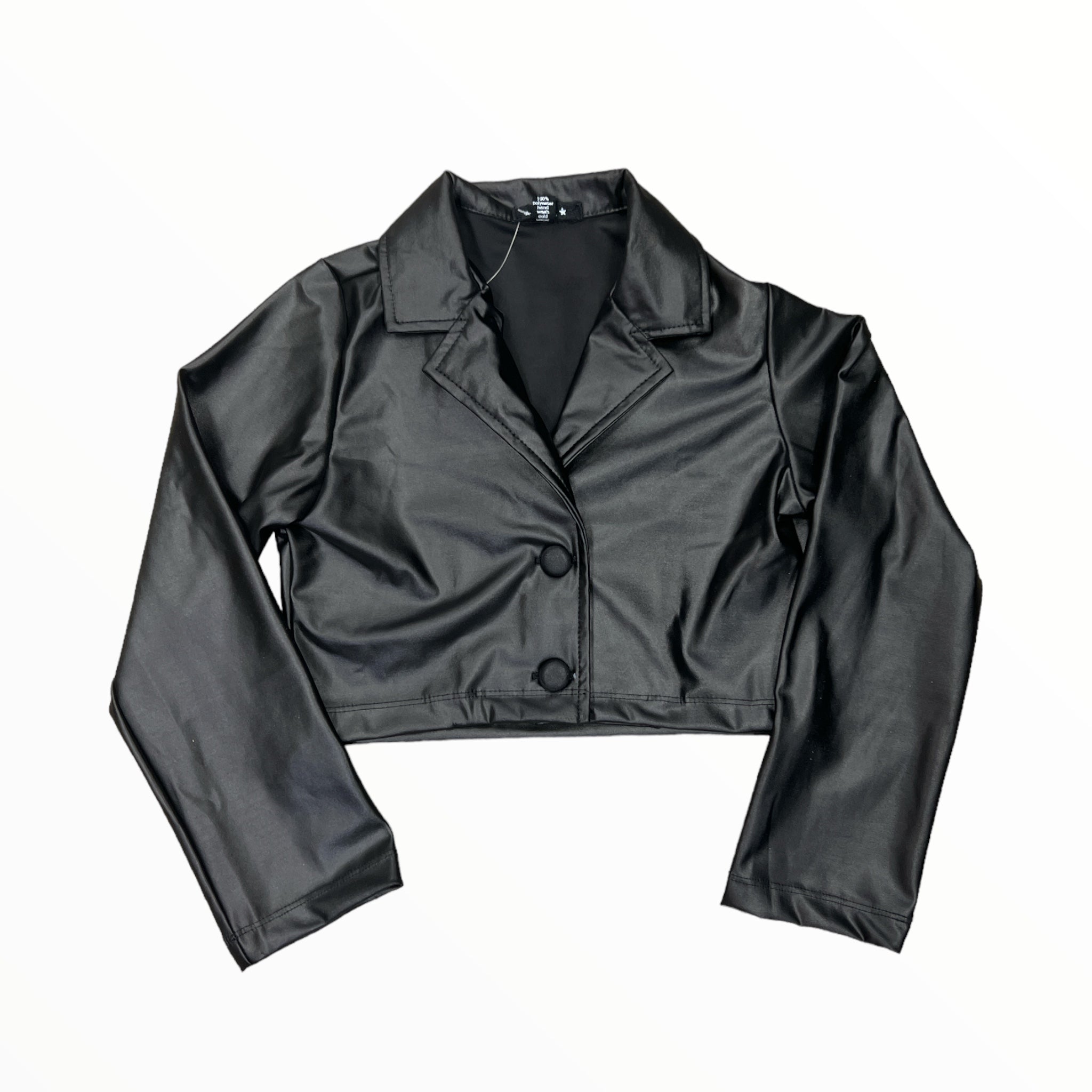 FLOWERS BY ZOE THIN PLEATHER JACKET - BLACK
