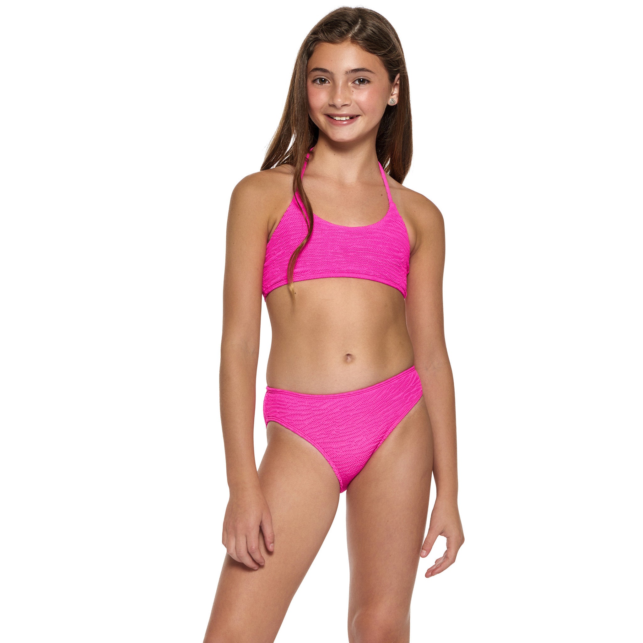 Little Peixoto Georgie bikini set in Pink Crush fabric. Halter neck. Elasticated waistband. 85% nylon/15% elastane. Hand wash. Imported.