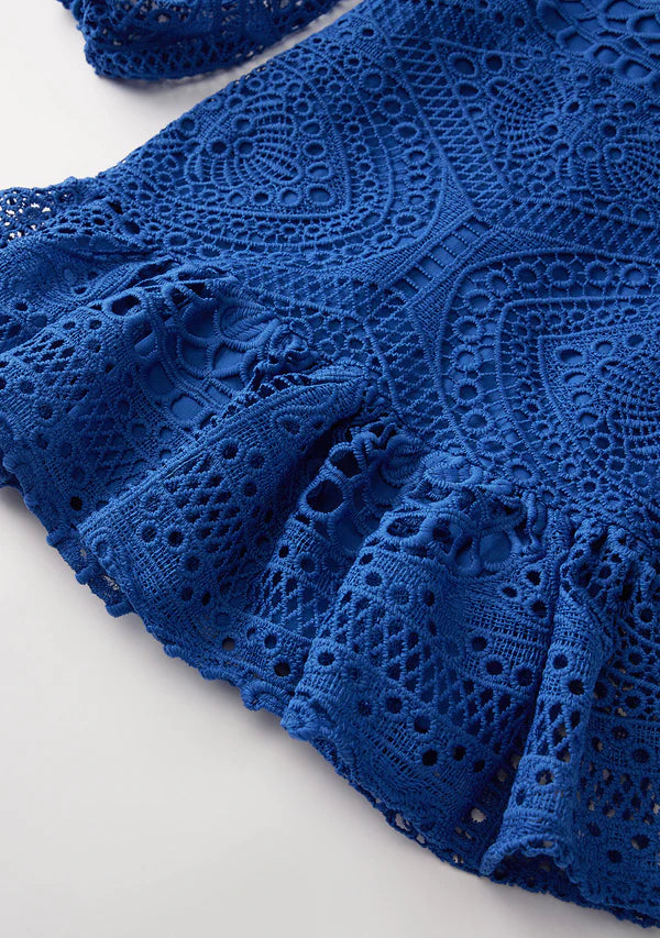 The Tallulah Embroidered Dress is sure to turn heads. With its long balloon sleeves and striking royal blue color, this mini dress is a showstopper for any special event.