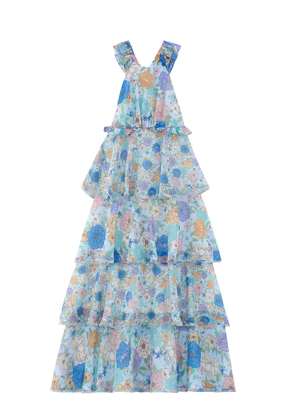 Embrace the beauty of florals with our Azure Maxi Dress. With its open back detailing and tiered ruffles, this floral maxi dress is perfect for making a statement at any event.