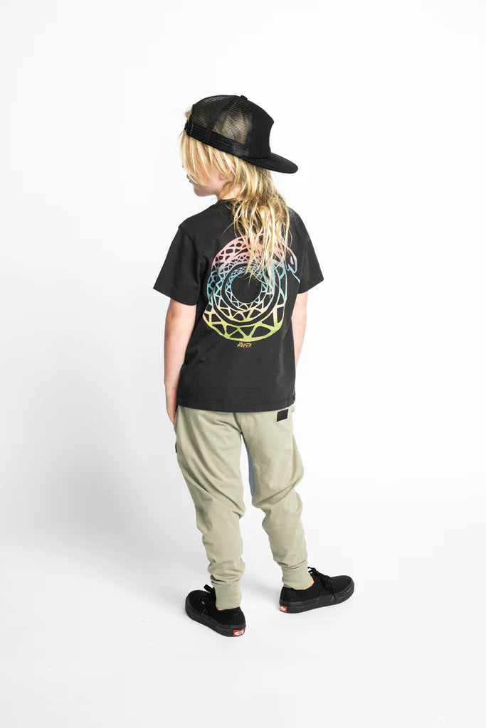 100% COTTON JERSEY TEE W CHEST AND BACK PRINT