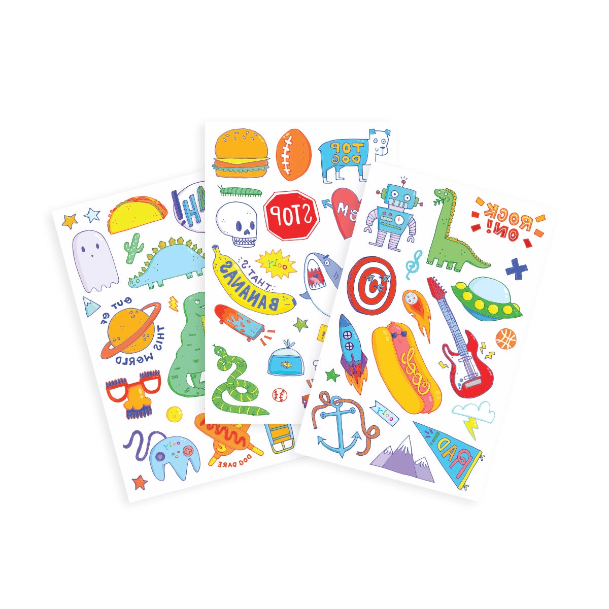 Show off your wild side with this set of fun Space Explorers temporary tattoo sheets. Easy to apply and lasts up to 5 days. Non-toxic.