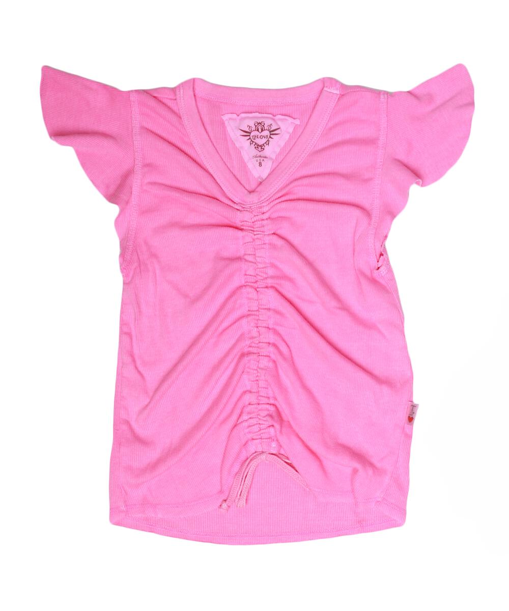 T2LOVE RUFFLE SLEEVE GATHERED FRONT TOP - NEON PINK