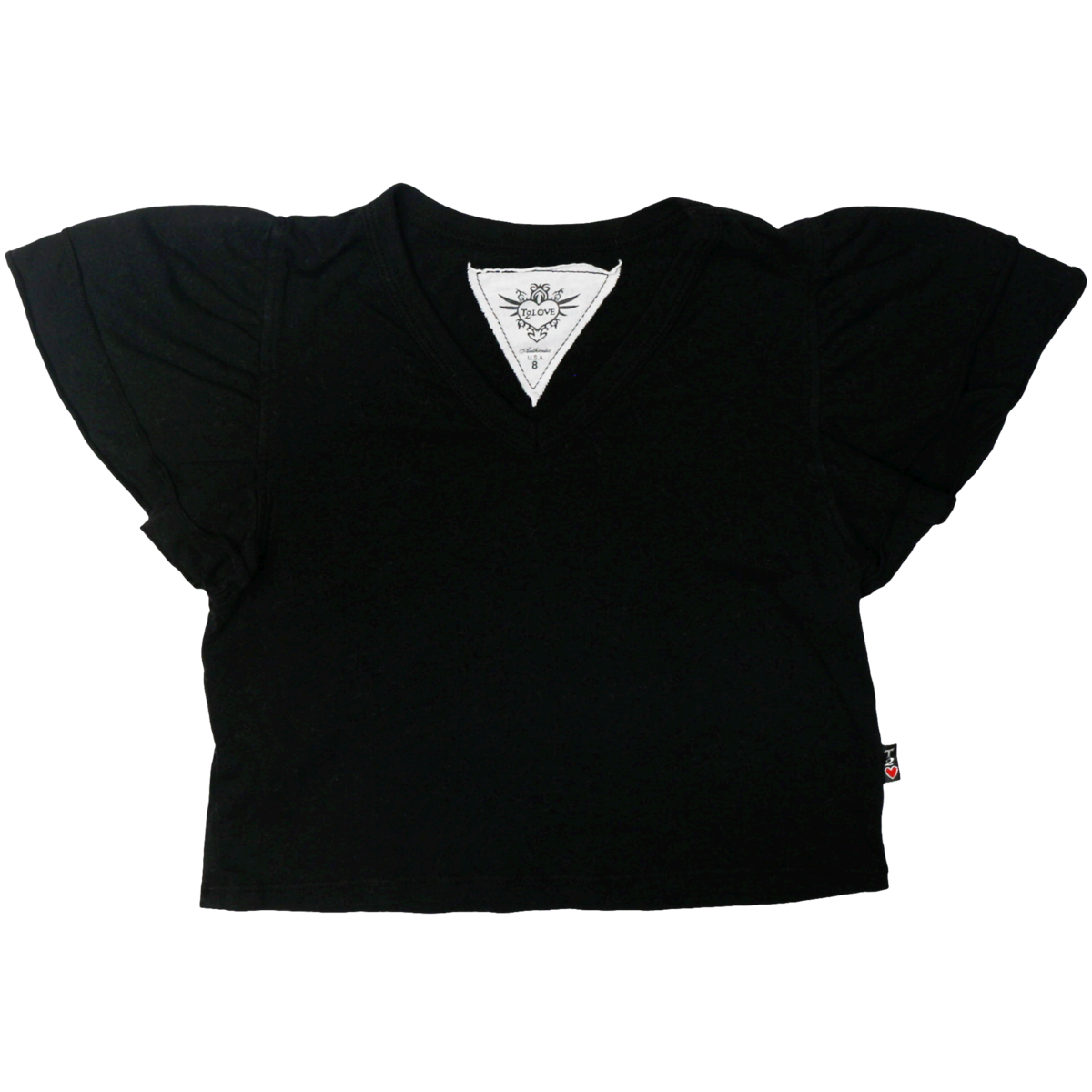 T2LOVE RUFFLE S/S V-NECK TEE - BLACK