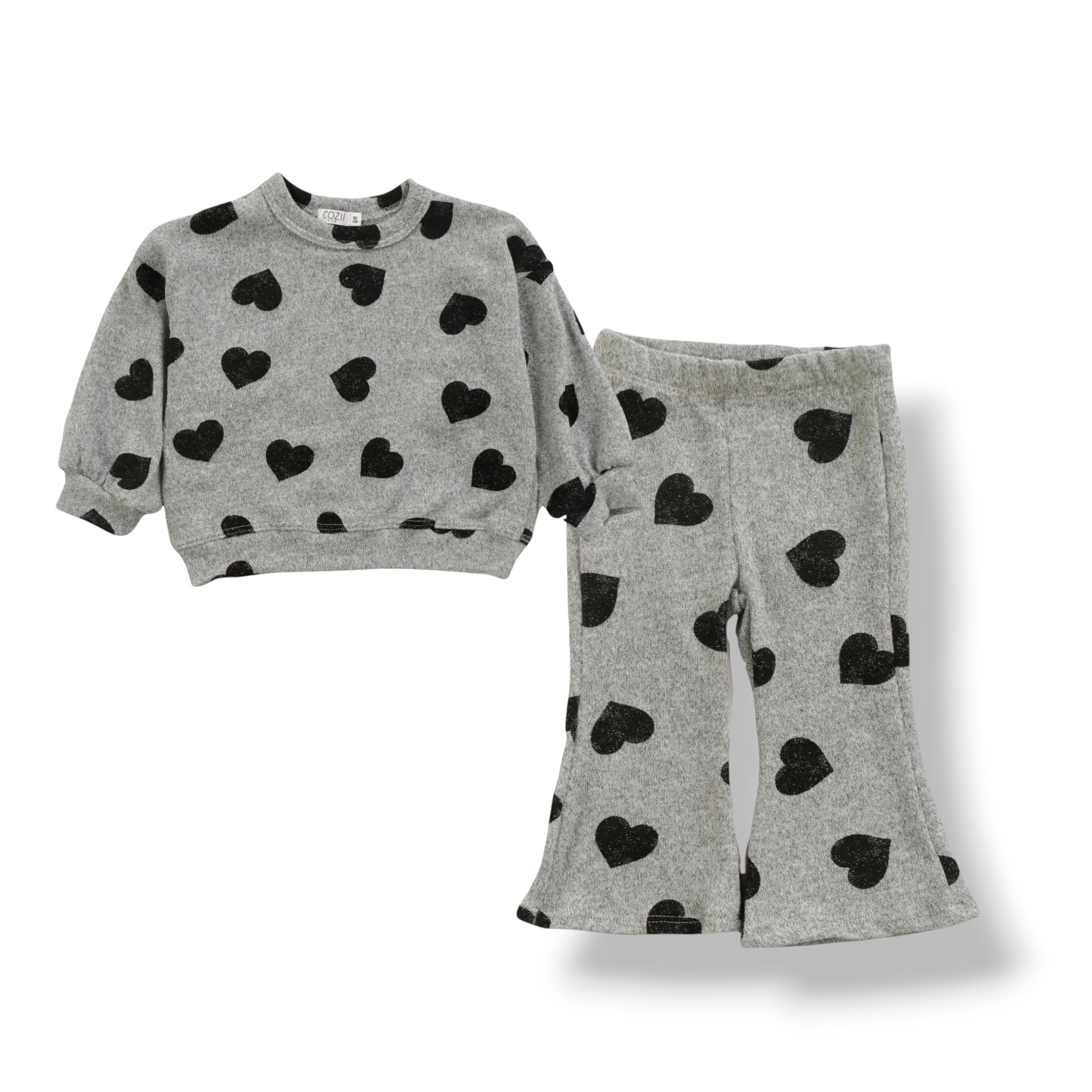 COZII HACCI SWEATER AND FLARE LEGGING SET - GRAY HEARTS