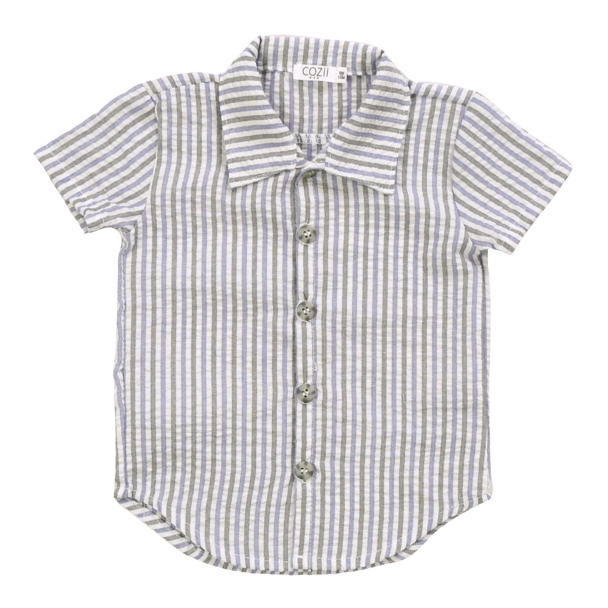 COZII S/S BUTTON DOWN AND SHORT SET - CRINKLE TRIPE