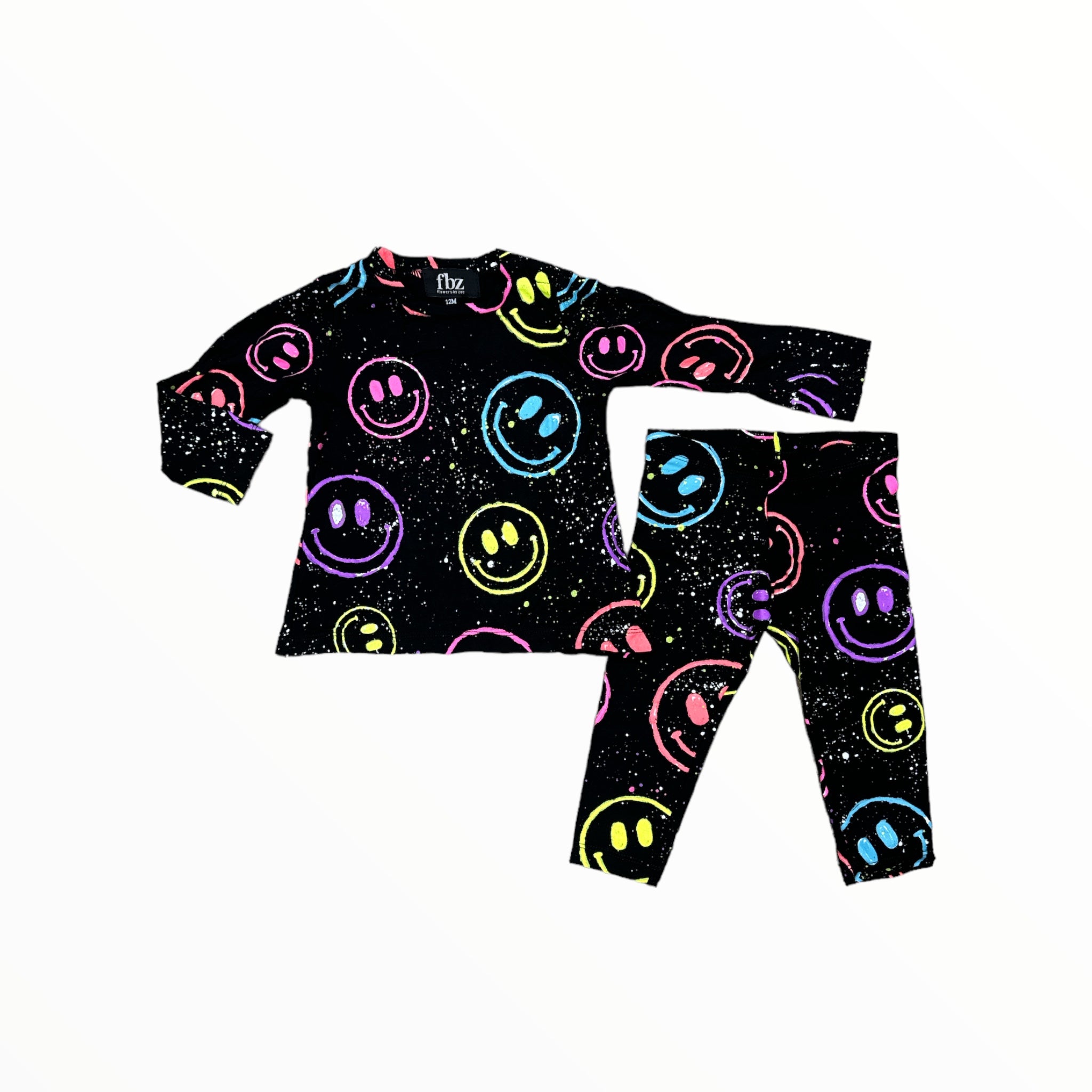 FLOWERS BY ZOE BABY L/S AND LEGGING SET/ BLACK NEON SMILEY