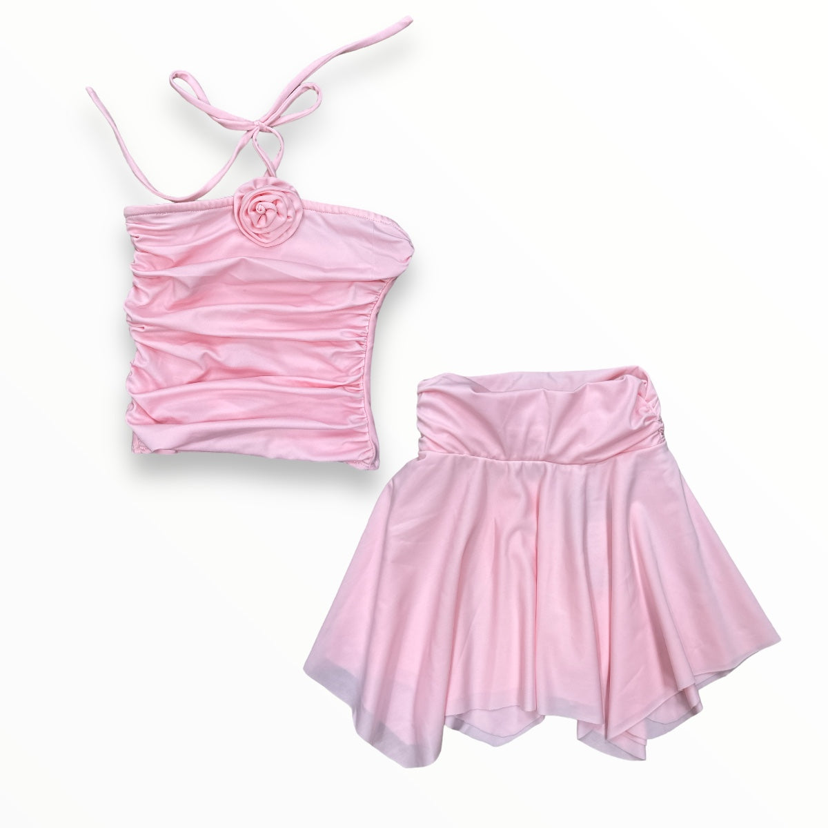 FLOWERS BY ZOE HANKERCHIEF SKIRT SET WITH ROSE - PINK