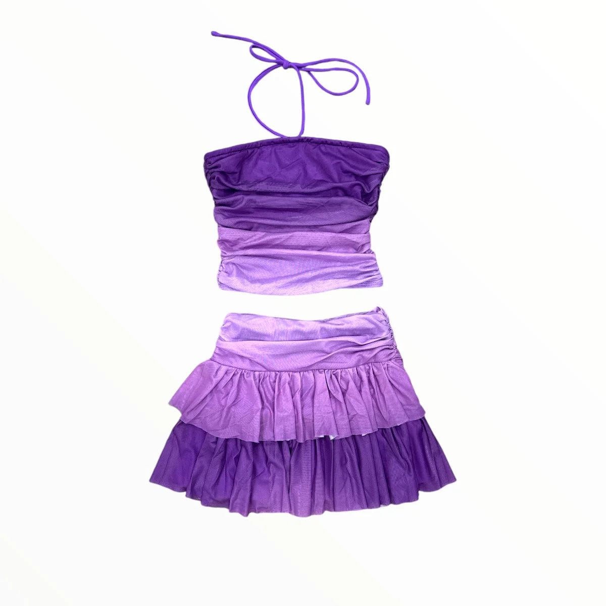 FLOWERS BY ZOE MESH HALTER TOP -PURPLE OMBRE