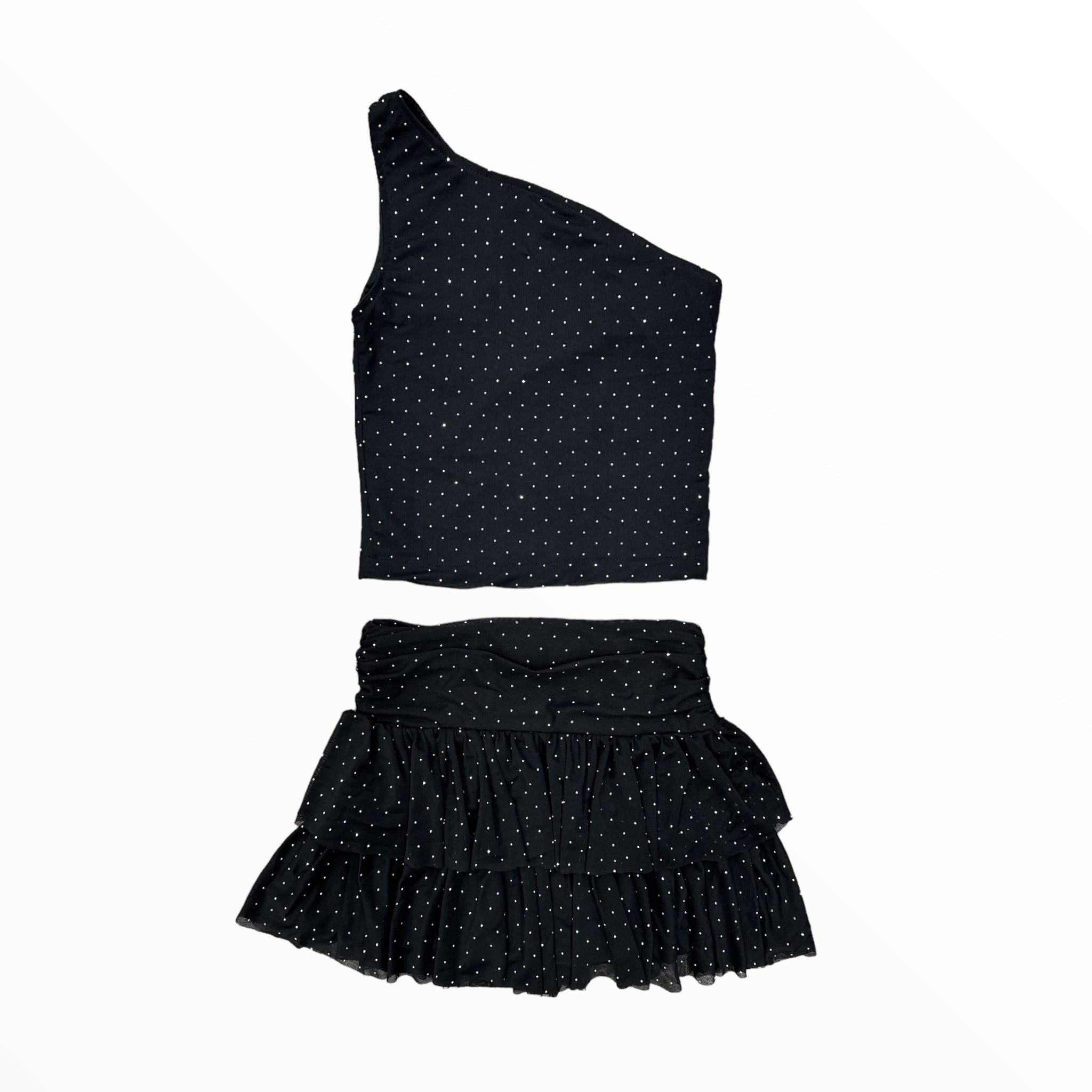 FLOWERS BY ZOE MESH ONE SHOULDER TOP AND SKIRT SET - BLACK/STONES