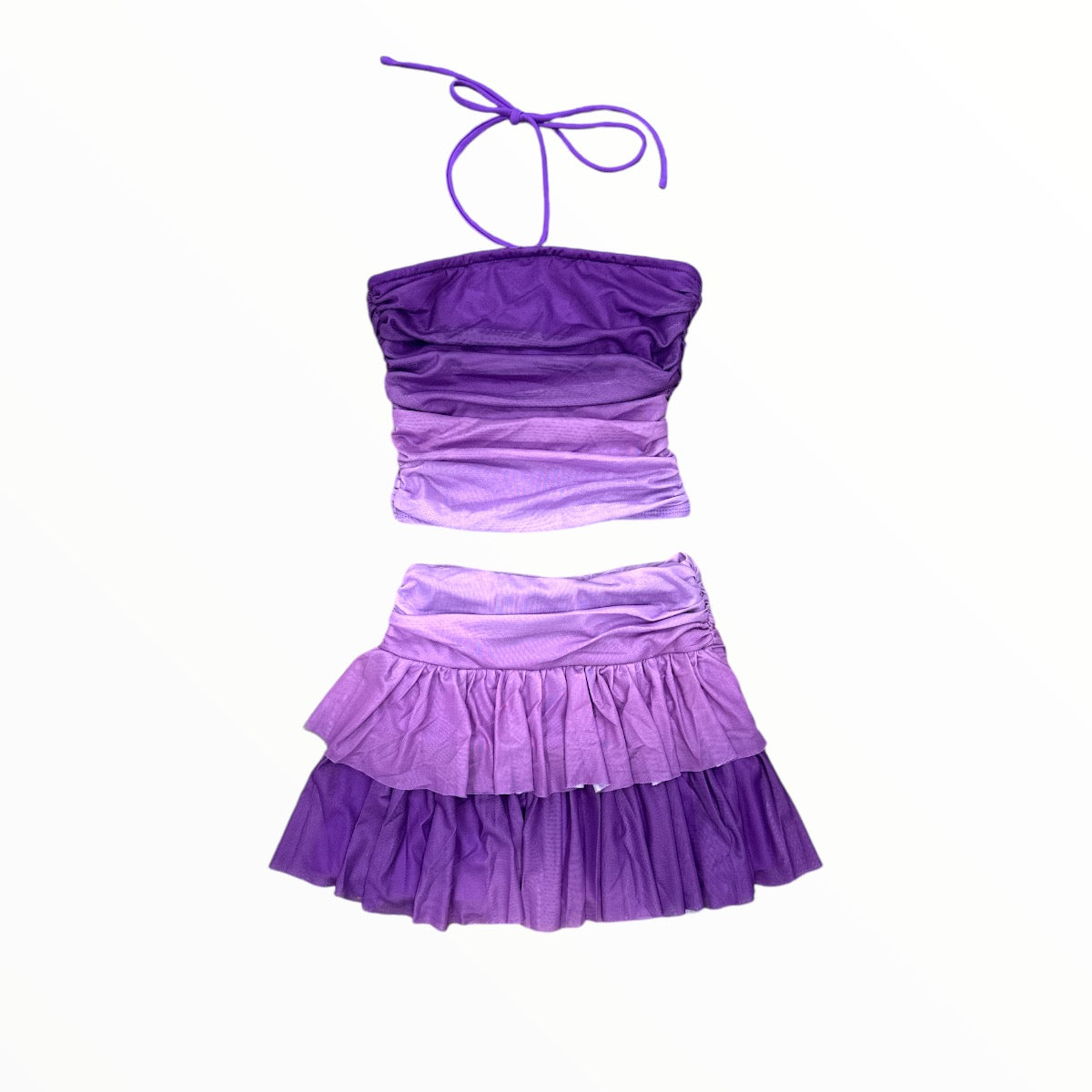 FLOWERS BY ZOE MESH SKIRT SET - PURPLE OMBRE