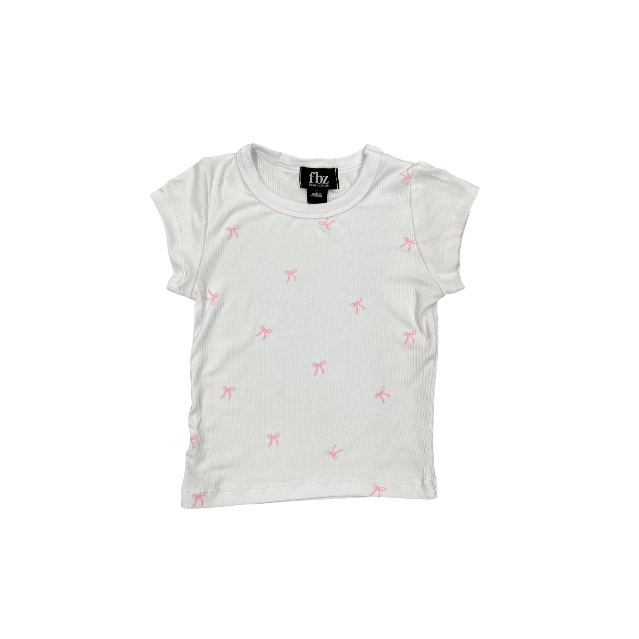 FLOWERS BY ZOE RIBBED T-SHIRT - WHITE/BOWS
