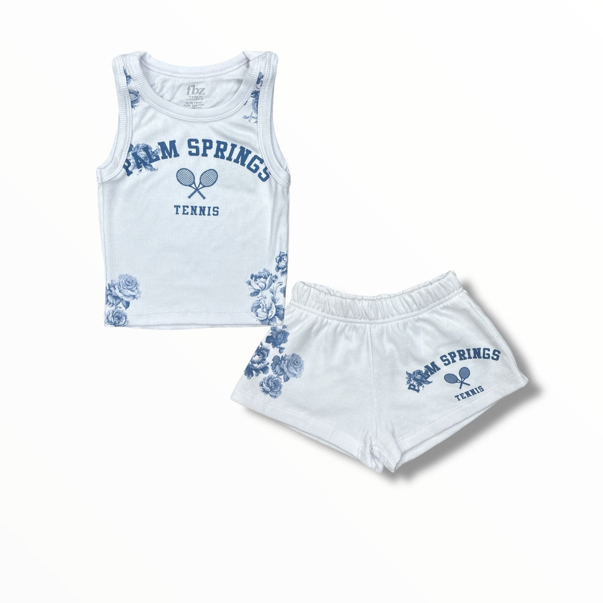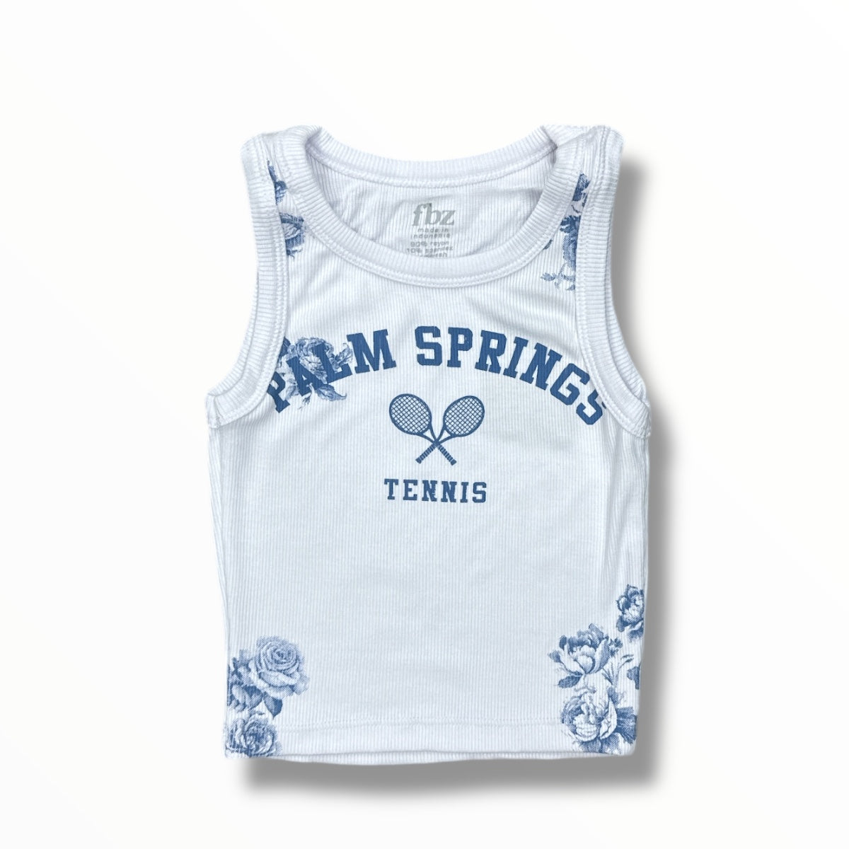 FLOWERS BY ZOE RIBBED TANK - WHITE/PALM SPIRNGS