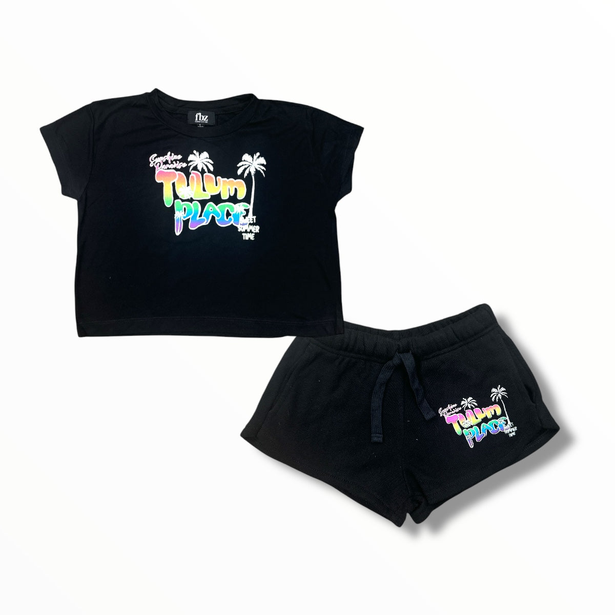 FLOWERS BY ZOE SHORTS - BLACK/TULUM