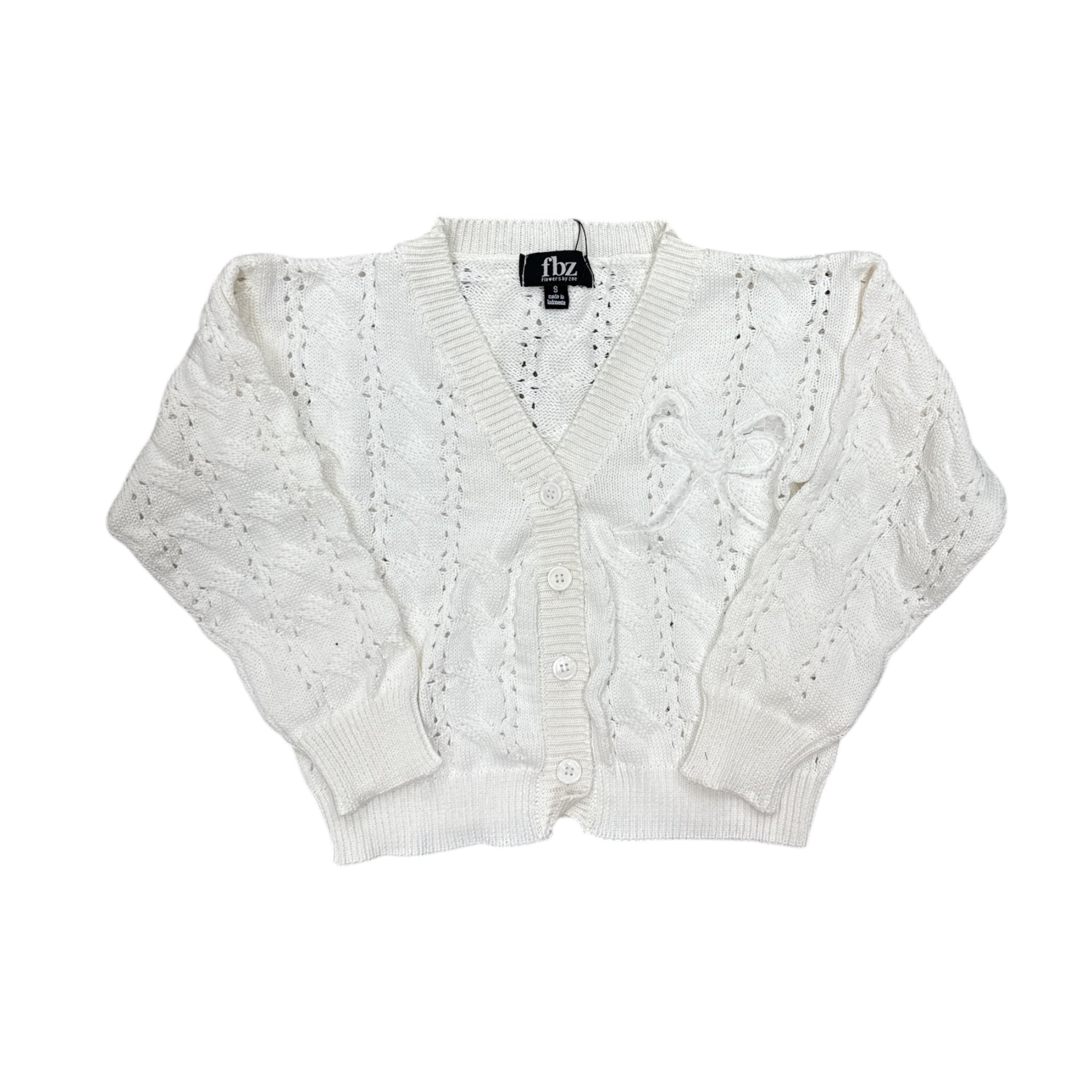 FLOWERS BY ZOE CABLE CARDIGAN WITH LACE BOW - OFF WHITE