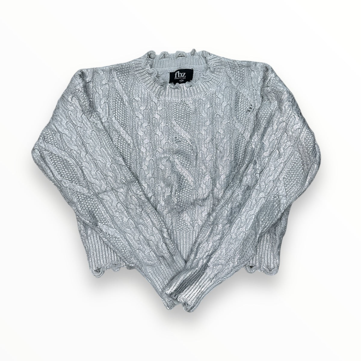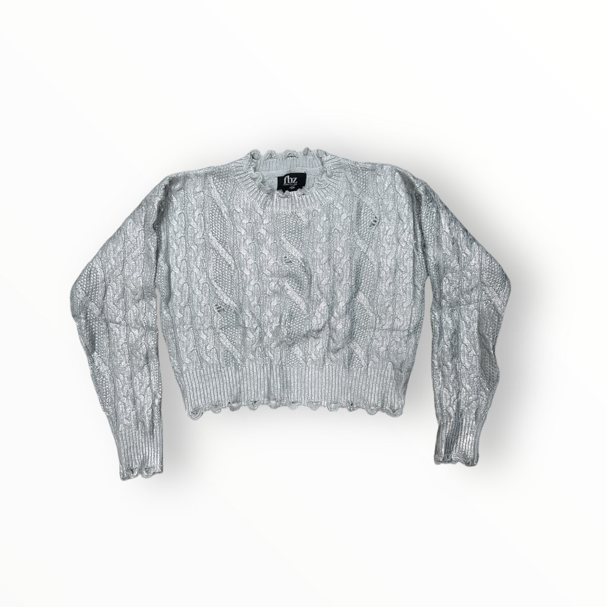 FLOWERS BY ZOE CABLE SWEATER METALLIC SILVER