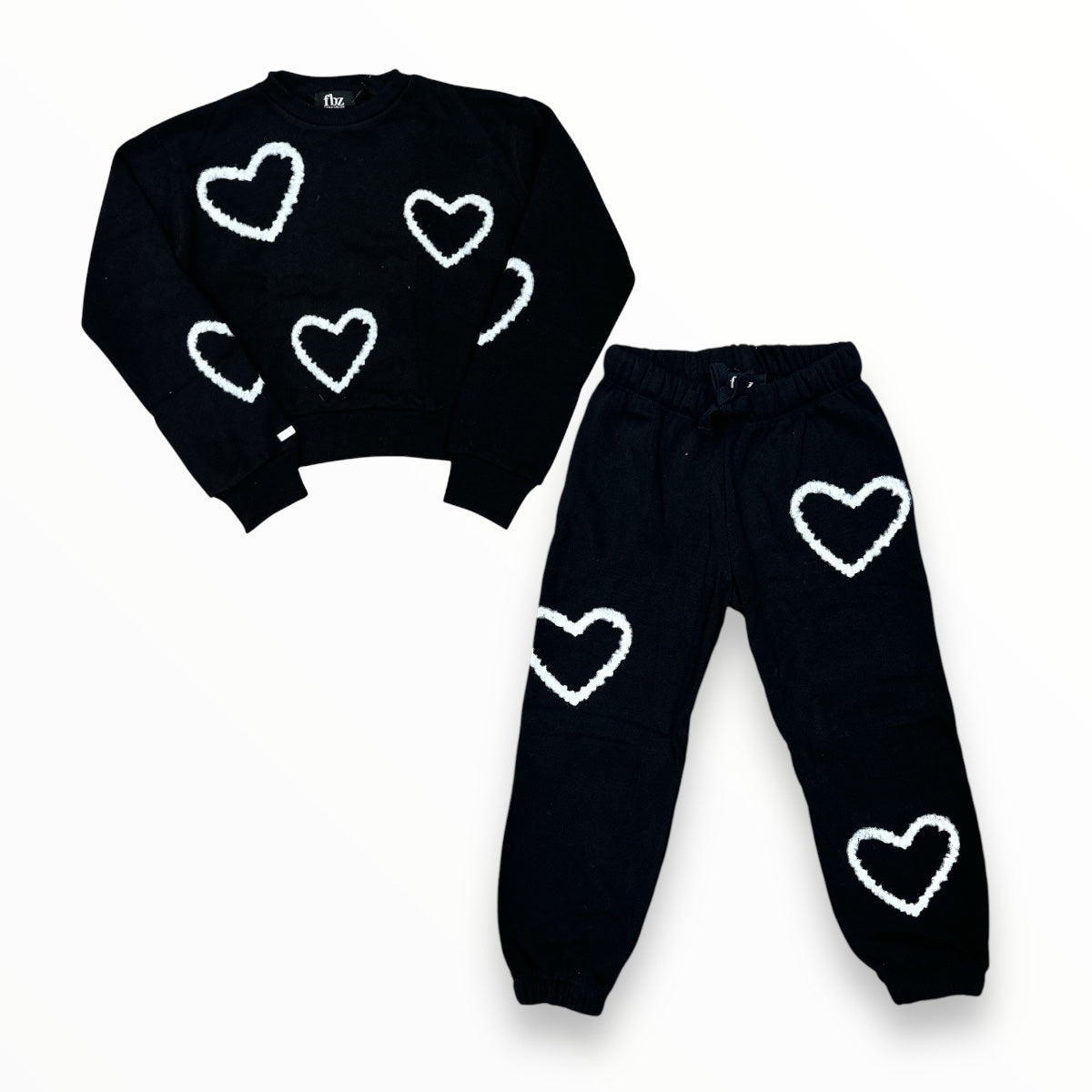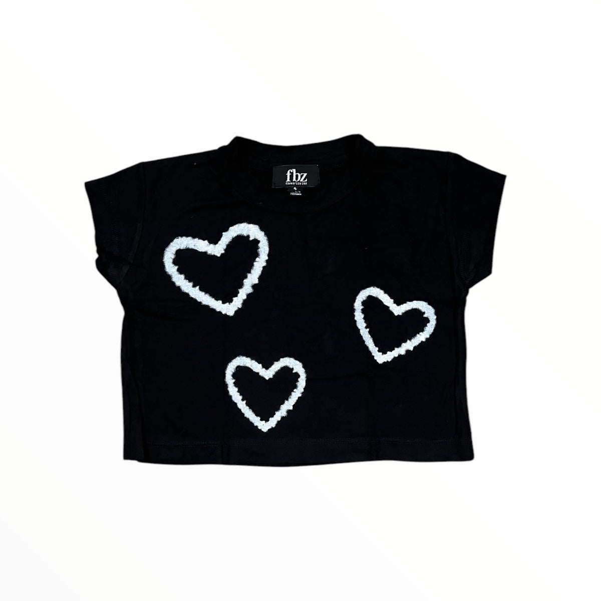 FLOWERS BY ZOE T-SHIRT - BLACK/WHITE HEARTS