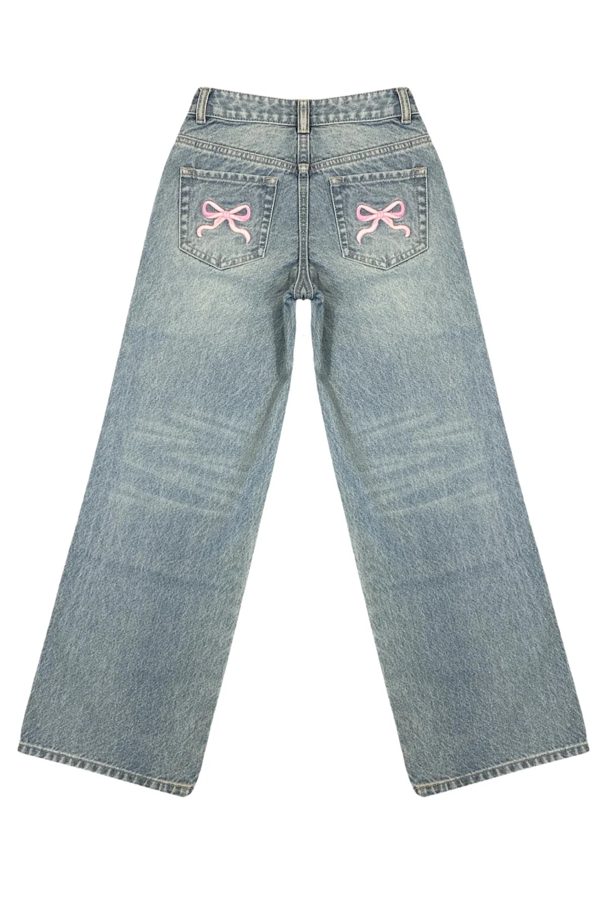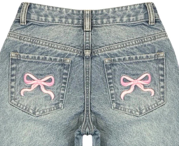 Elevate your everyday style with our Chicago jeans in a light wash. Ideal for casual wear, these trendy jeans feature a stylish low waist design accented with charming bows!