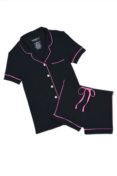 KATIE J JUNIOR LYNN SHORTS LOUNGE SET - BLACK/NEON PINK