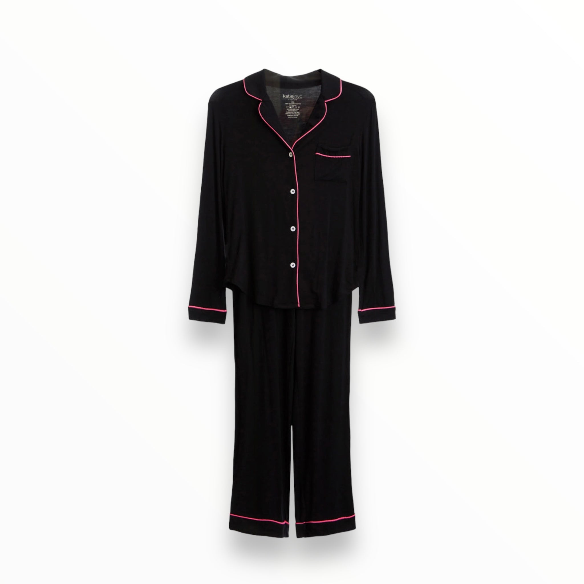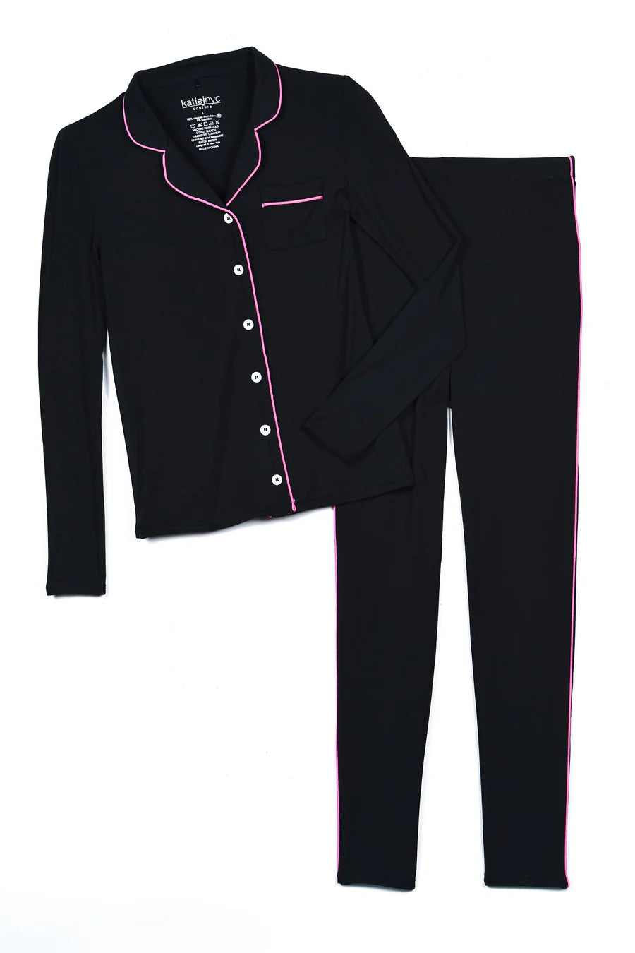 KATIE J JUNIOR MAIA PANT LOUNGE SET - BLACK/HOT PINK TRIM