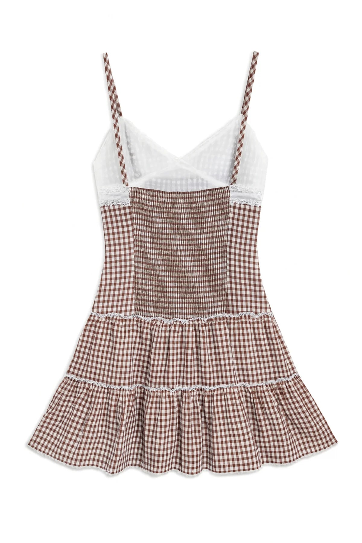 KATIE J. TWEEN FAWN LACE TRIM SUN DRESS - CHOCOLATE GINGHAM