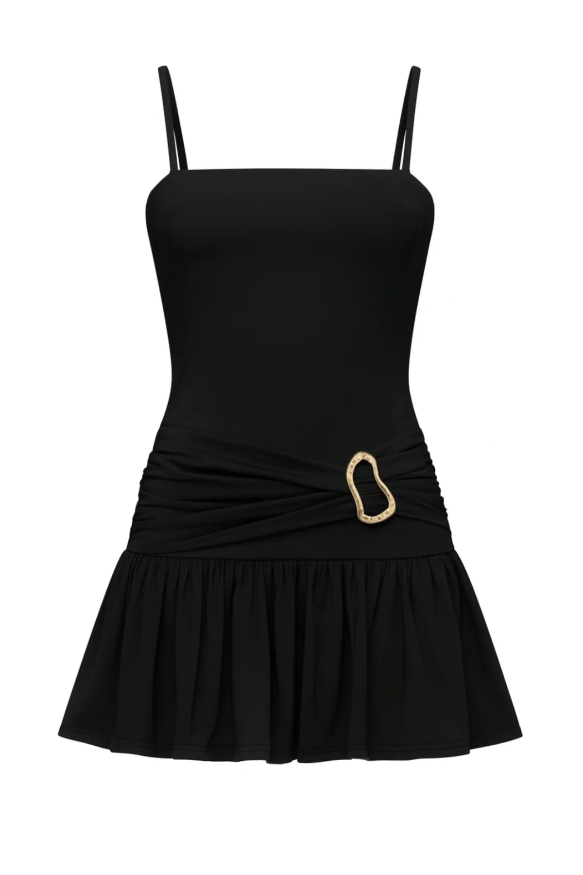 The Marci Gathered Waist Dress is the ultimate little black dress with a twist. Designed with a flattering cinched waist and playful gathered skirt, it’s finished with a chic gold tone detail that elevates your look effortlessly. Perfect for date nights, parties, or whenever you want to turn heads.