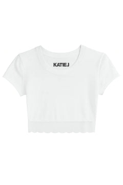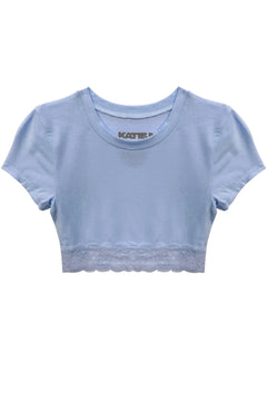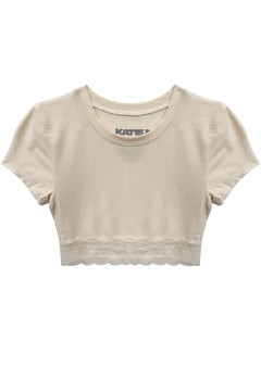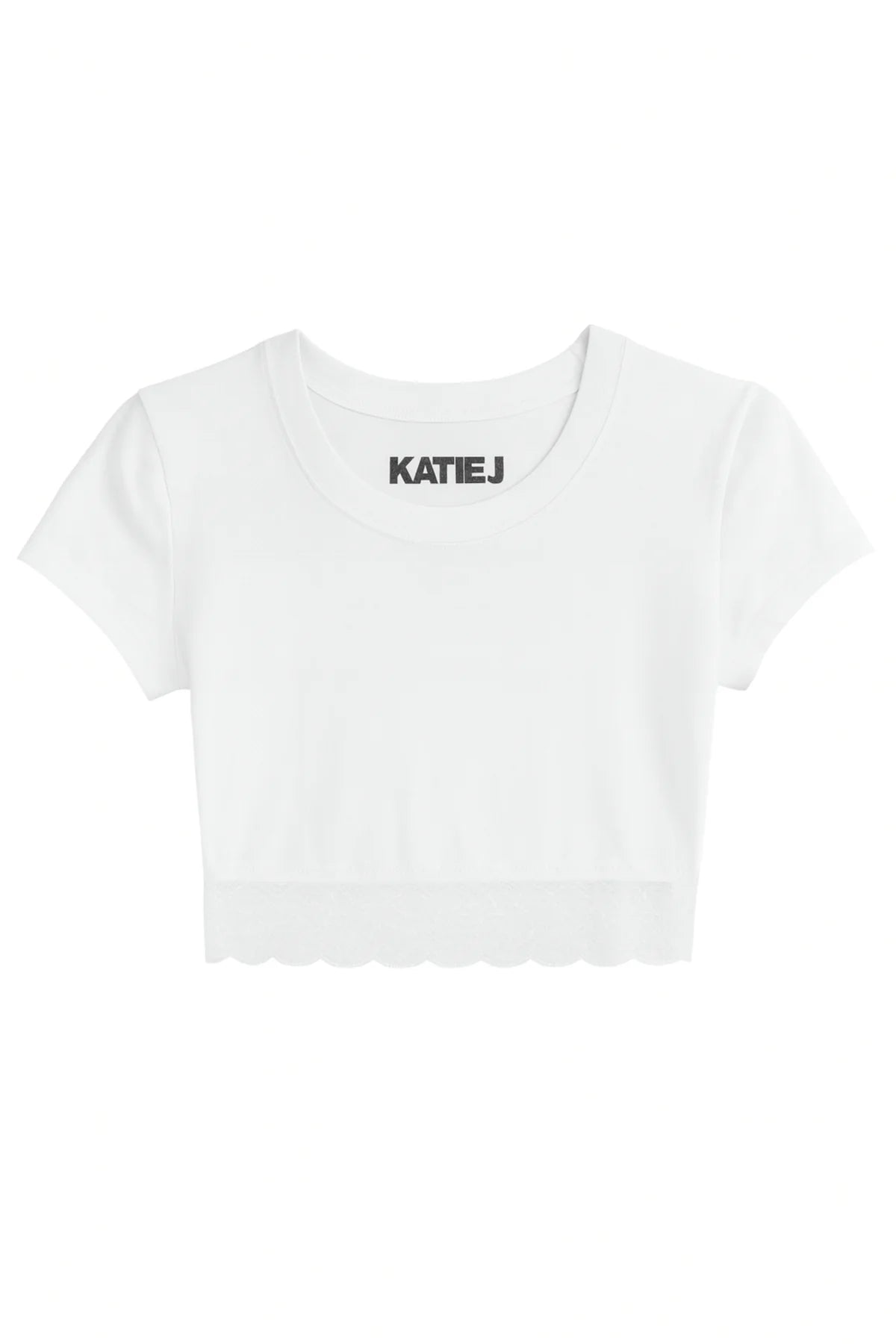 KATIE J TWEEN LINDSAY CROPPED LACE TRIM TOP - WHITE