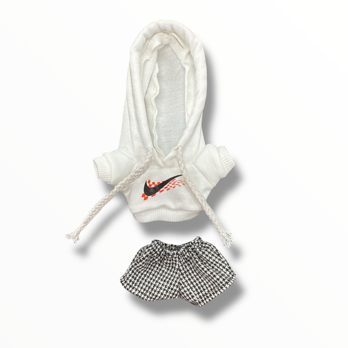 LABUBU OUTFIT - WHITE HOODIE/PLAID SHORT
