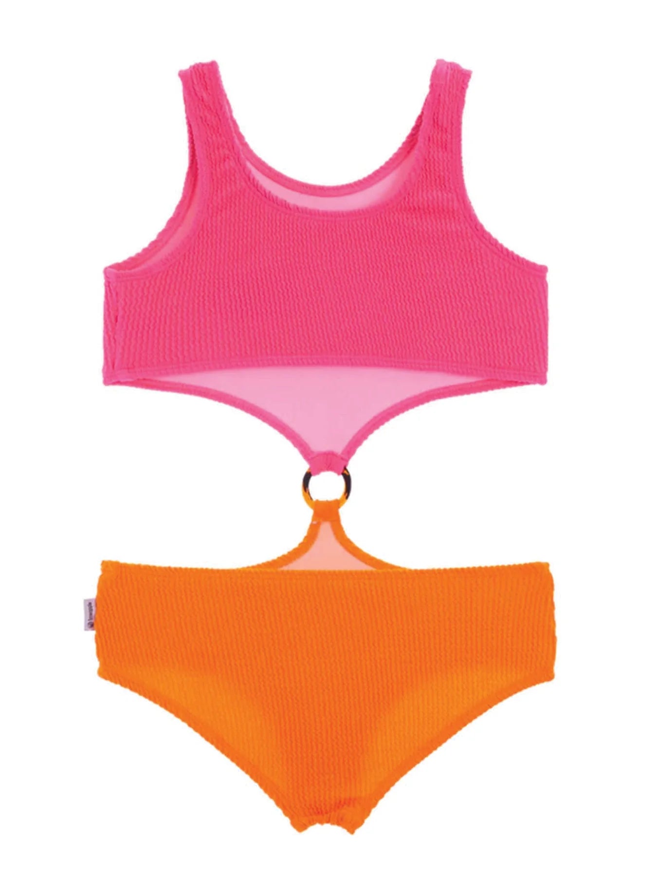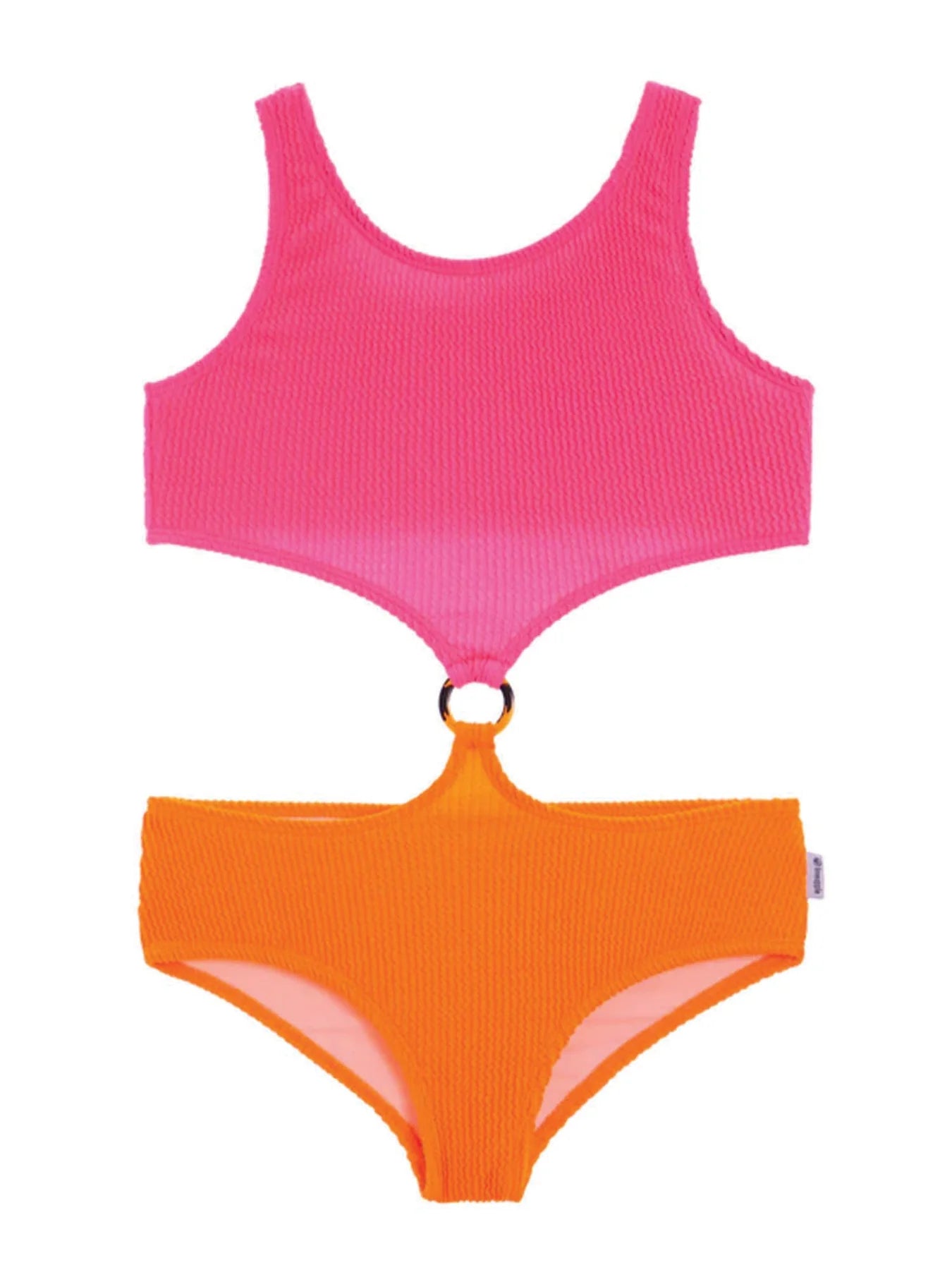 LIMEAPPLE FELICITY CRINKLE ONE PIECE SWIMSUIT - PINK/ORANGE