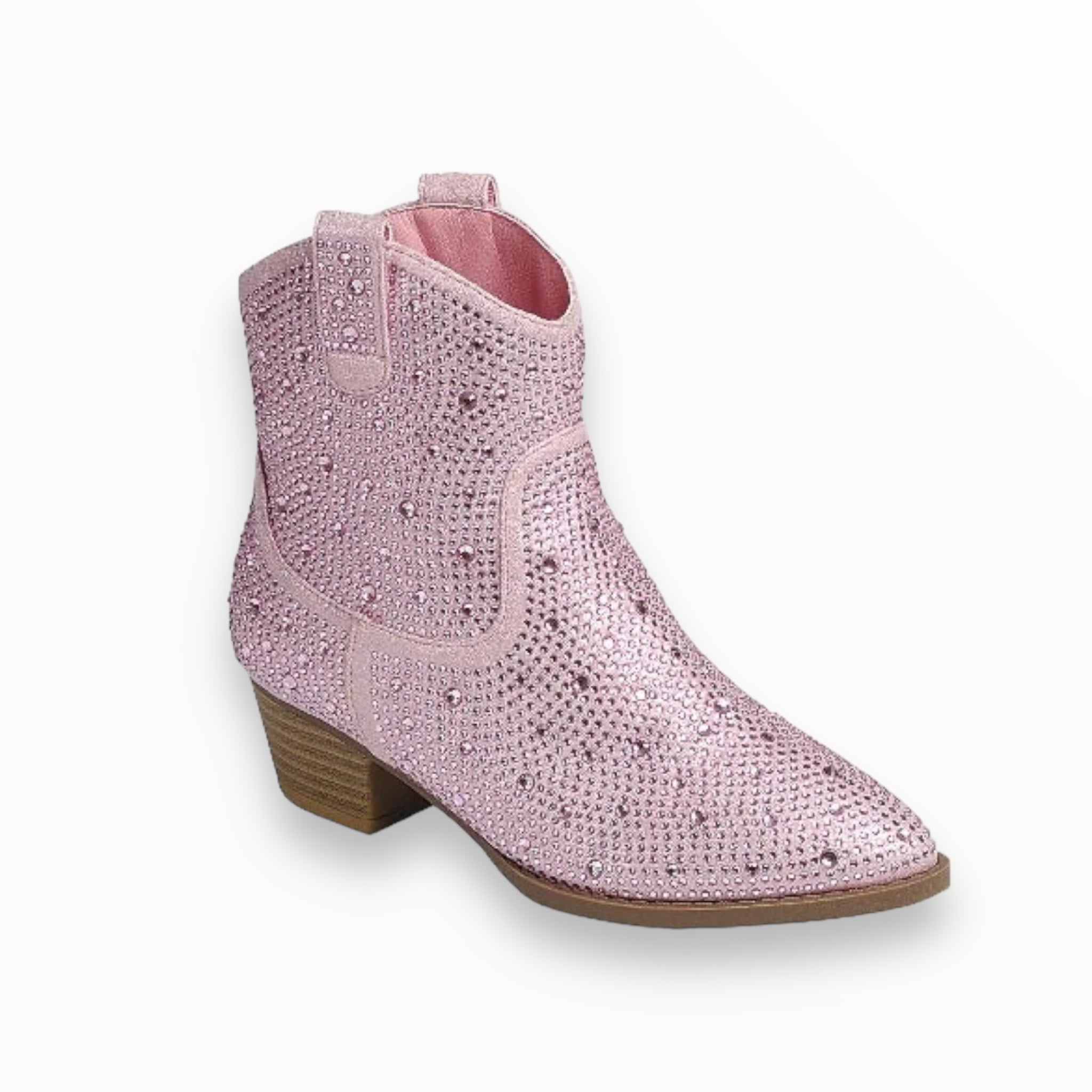 - Pink Rhinestone Encrusted Cowboy Ankle Bootie